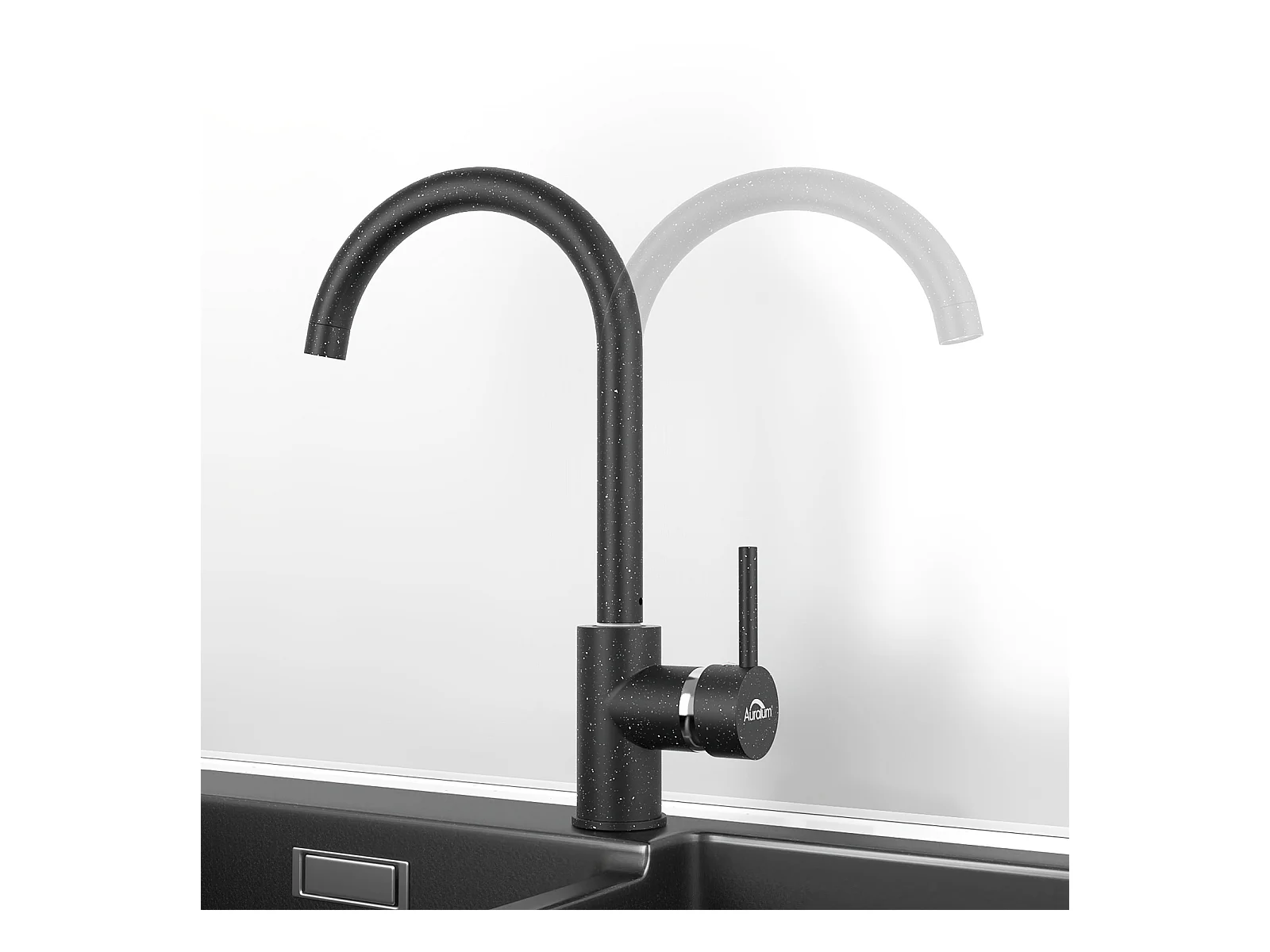 Aanrecht 1 Bak Zwart, RVS, 44*49*20 CM, met Zeepdispenser+ 360° Draaibare KeukenkraanKoud Water Warm Zwart met witte stippen