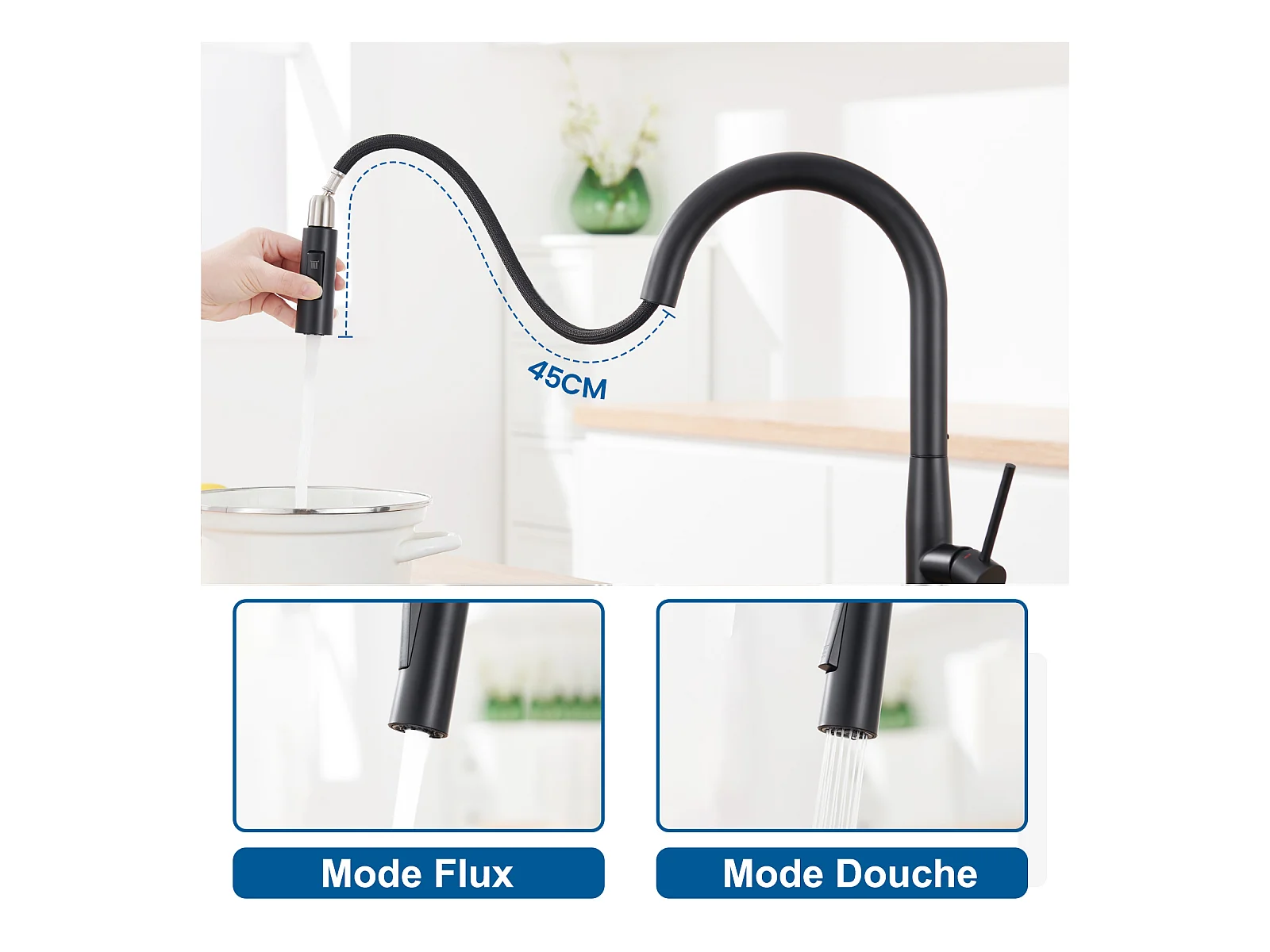 CROOM SANITAIR keukenkraan Nymex Zwart met uittrekbare uitloop