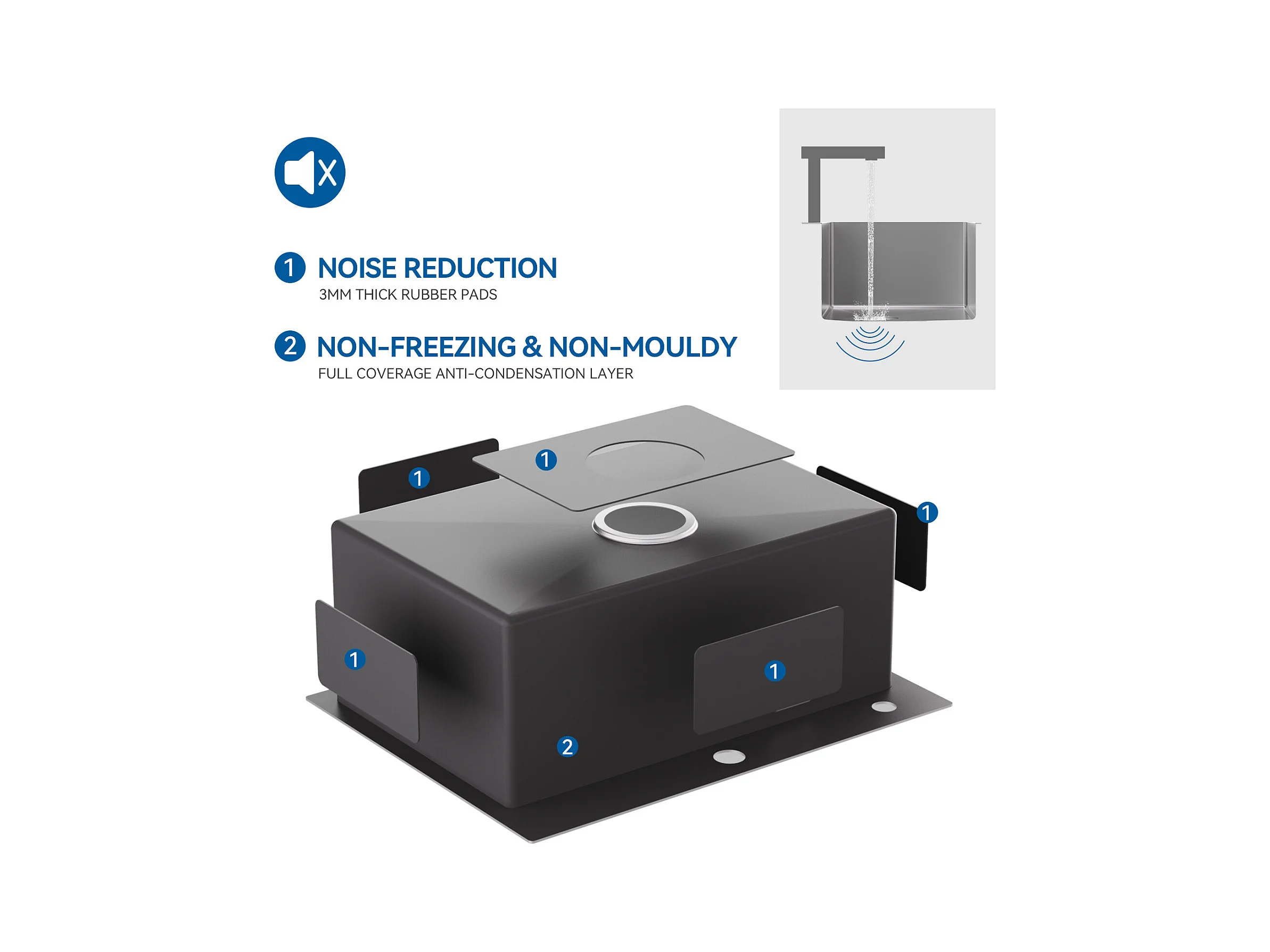 Aanrecht Keuken1Bak 58*45*18CM,met oprolbare gootsteenafdruiprek/zeepdispenser+360 ° roterende uittrekbare keukenkraan,2 functies,zwart