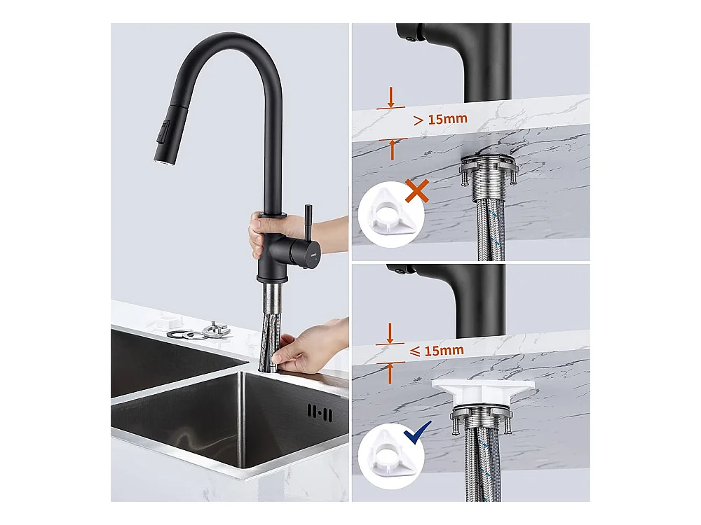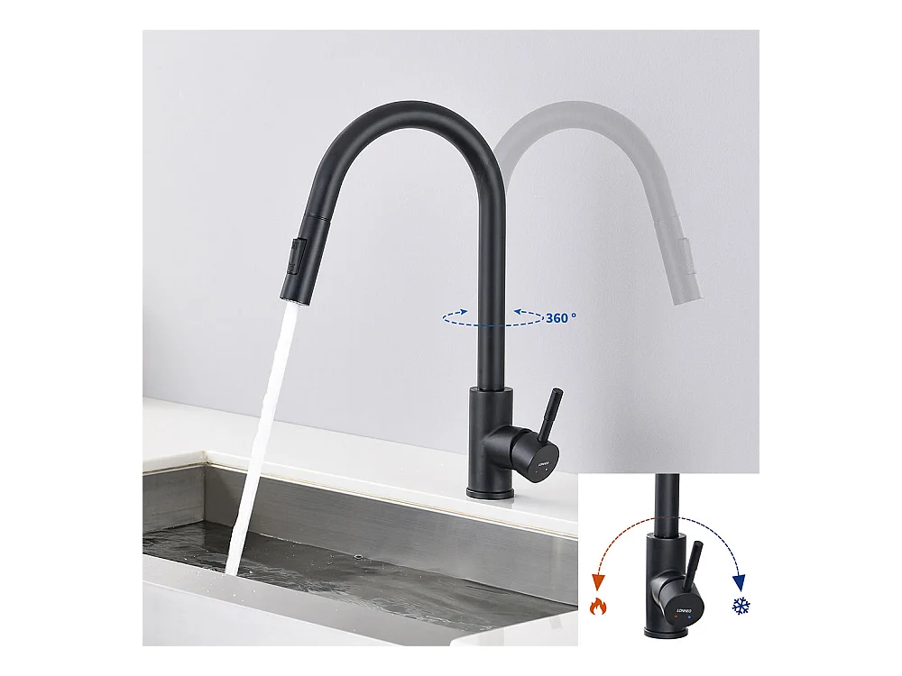 Keukenkraan met uittrekbare douchekop van roestvrij staal - Mat zwart - RONA