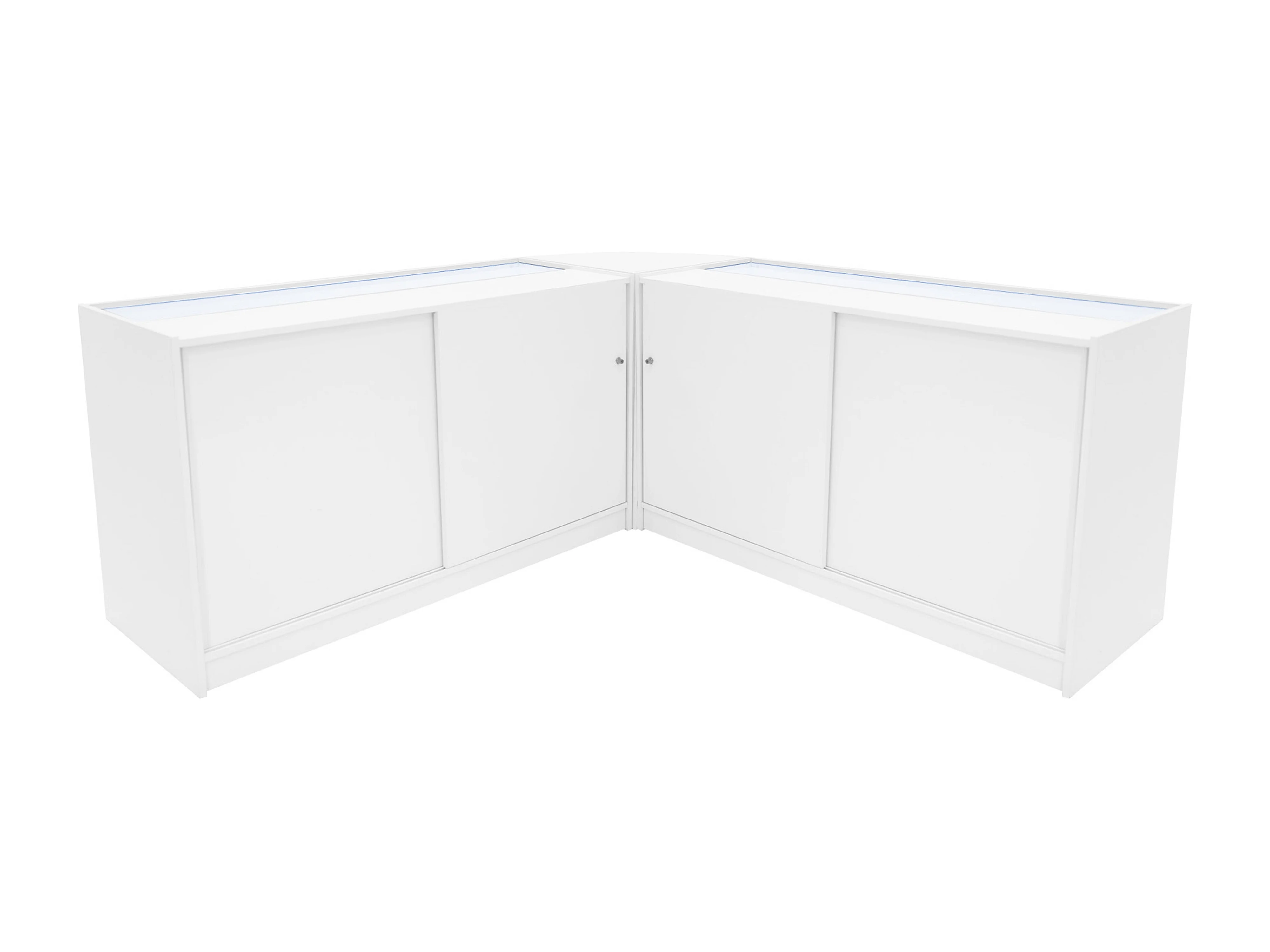 Wit Winkel Toonbank Set Selene LED C1500 CM60 Afsluitbaar Vitrinekast