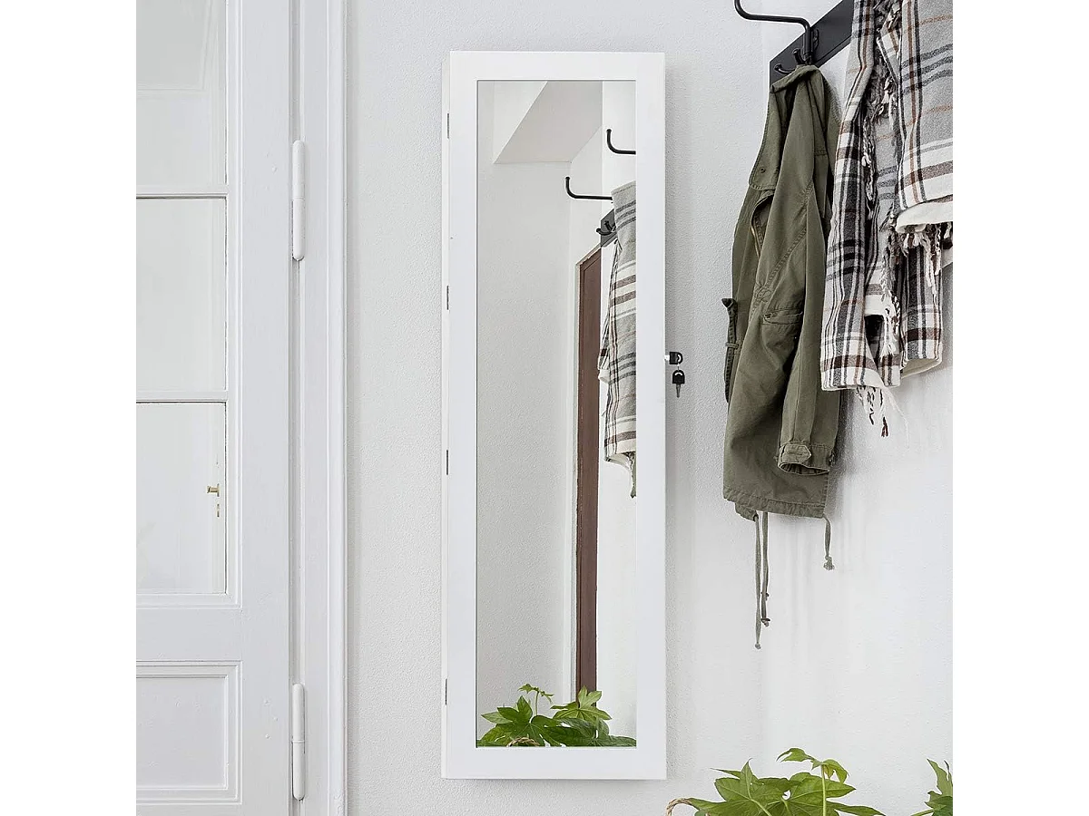JV10221WHDE Sieradenkast met spiegel sieradenspiegelkast afsluitbaar op wieltjes vrijstaand 42 x 38 x 157 cmVH32443