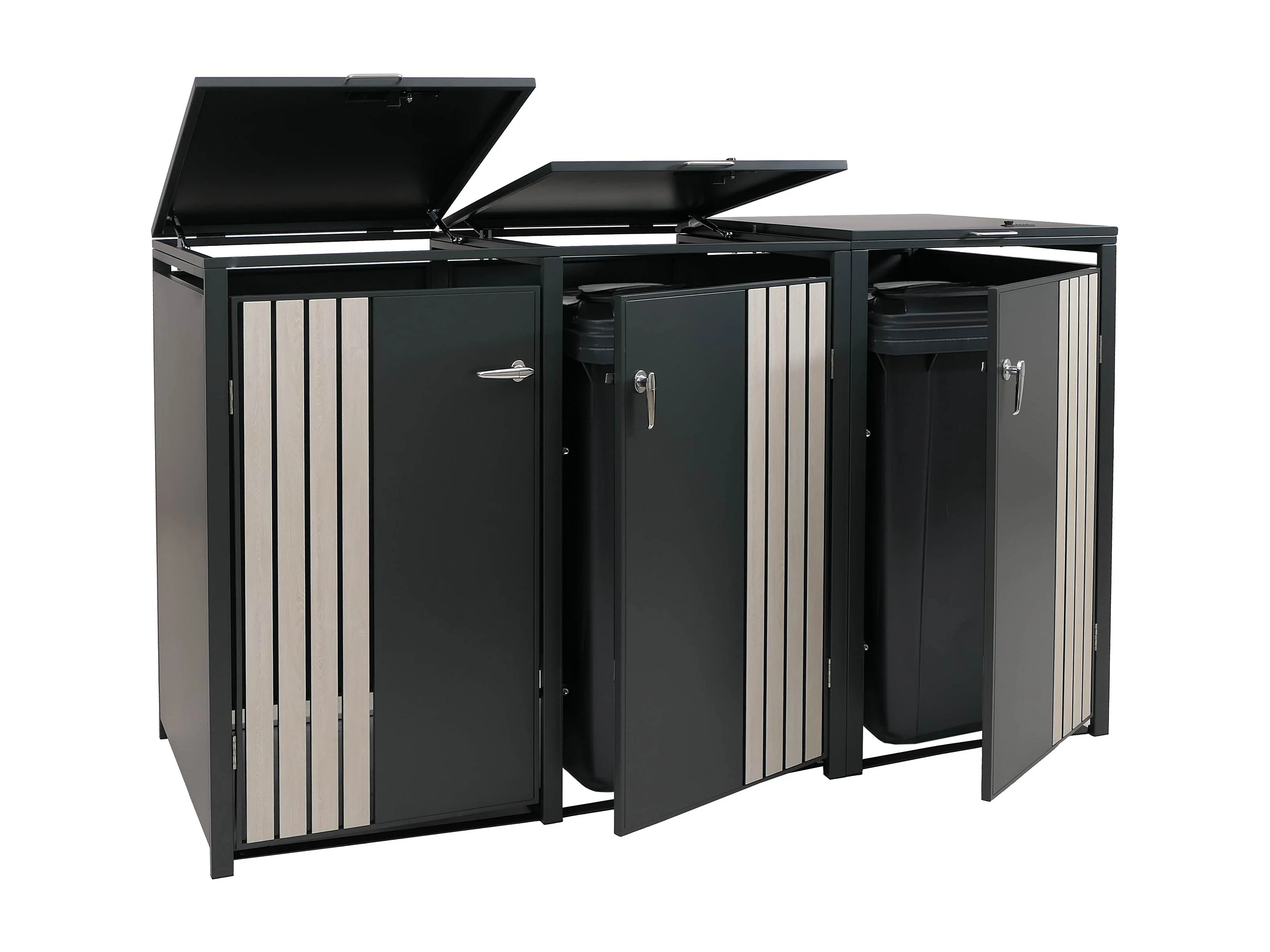 3-delige afvalbakbekleding MCW-O67, antraciet houtlook licht