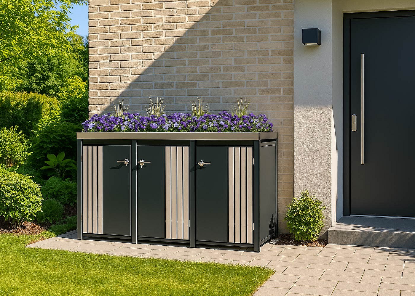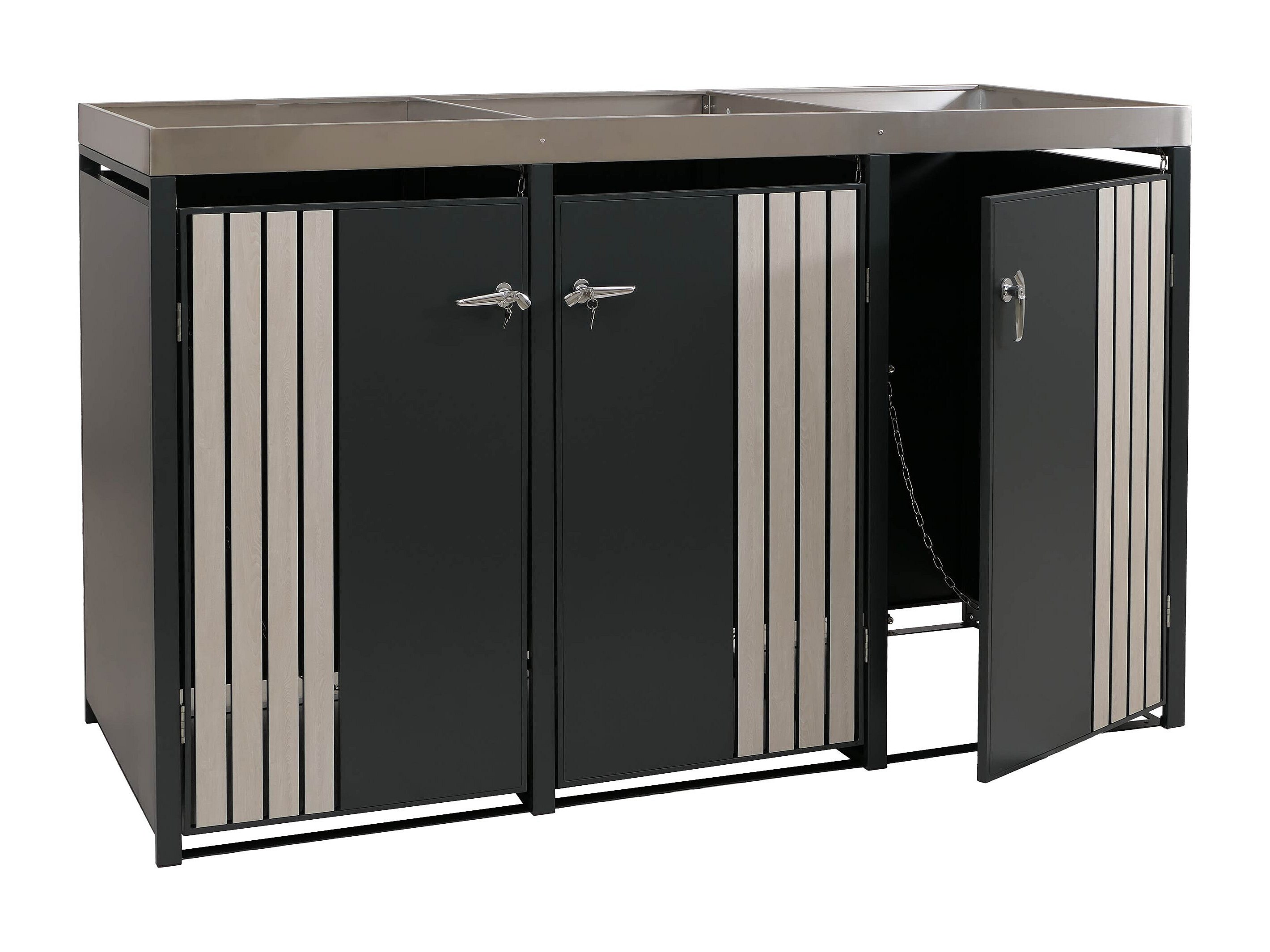 Afvalbakafdekking voor 3 bakken MCW-O67, antraciet houtlook licht
