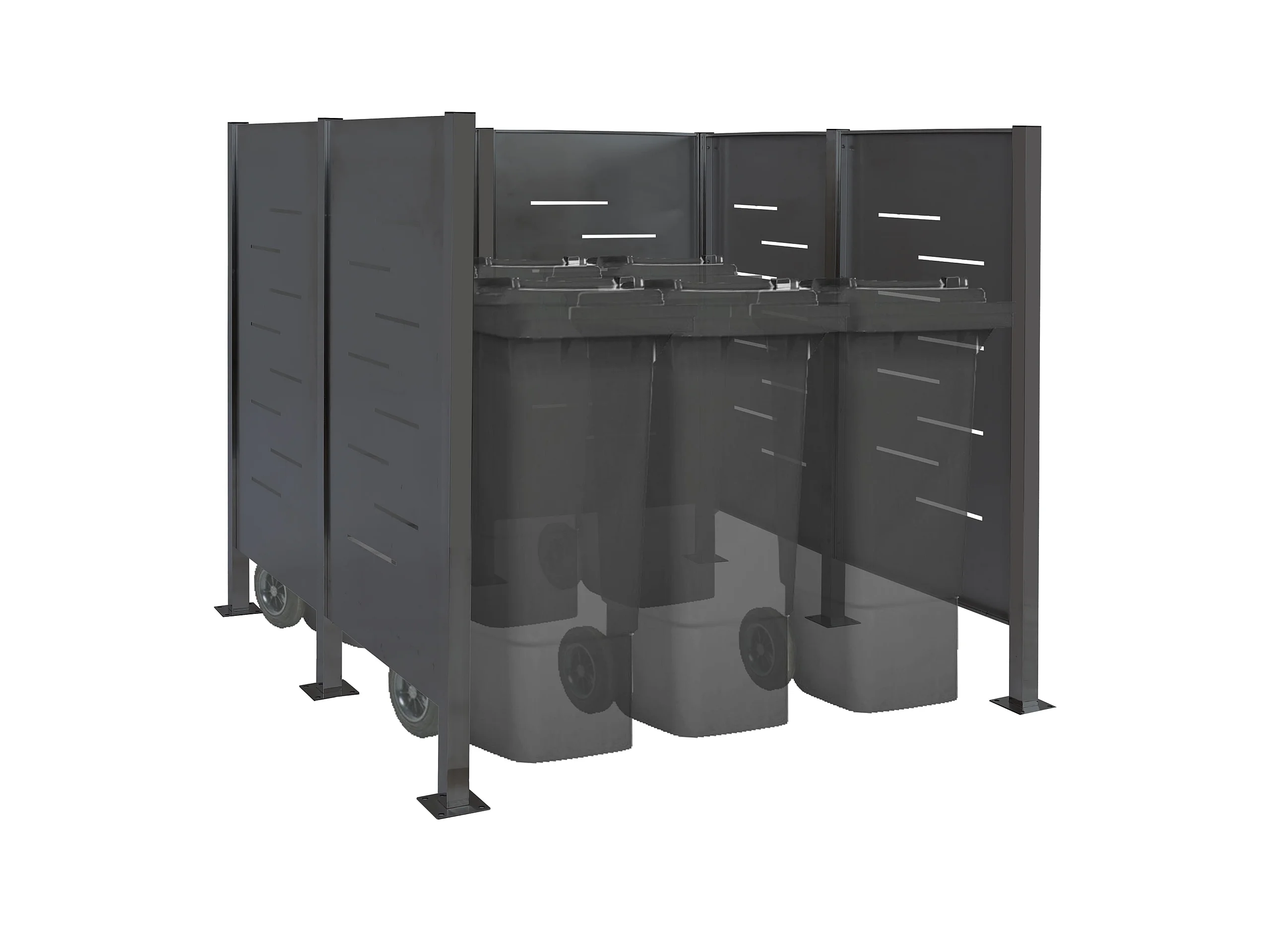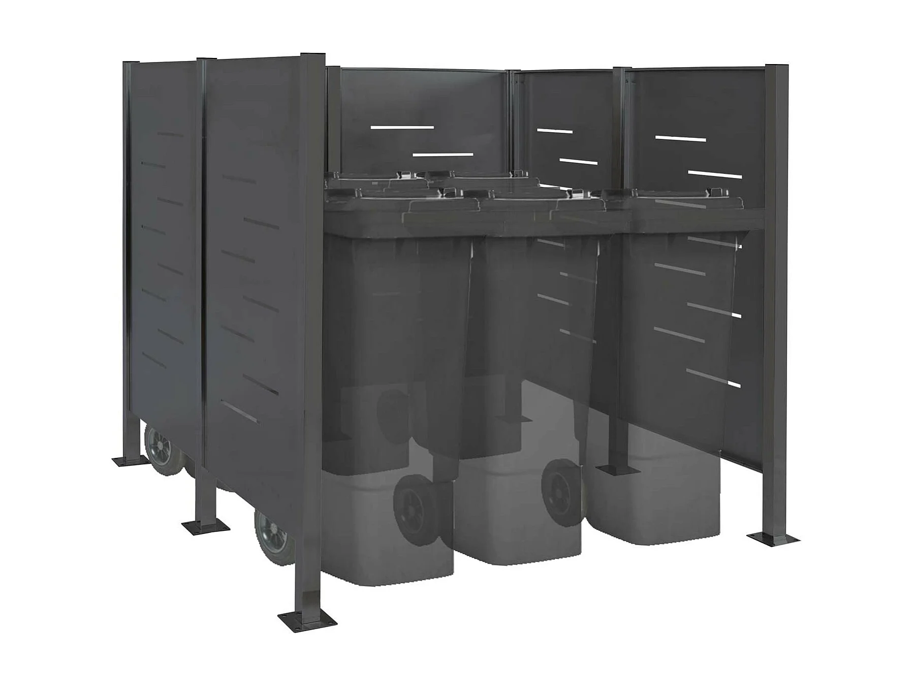 Vuilnisbak DBaldursso, Vuilnisbak, 3-deurs prullenbak, 100% Made in Italy, 102x37h84 cm, Grijs en Zwart, Geruite afwerking