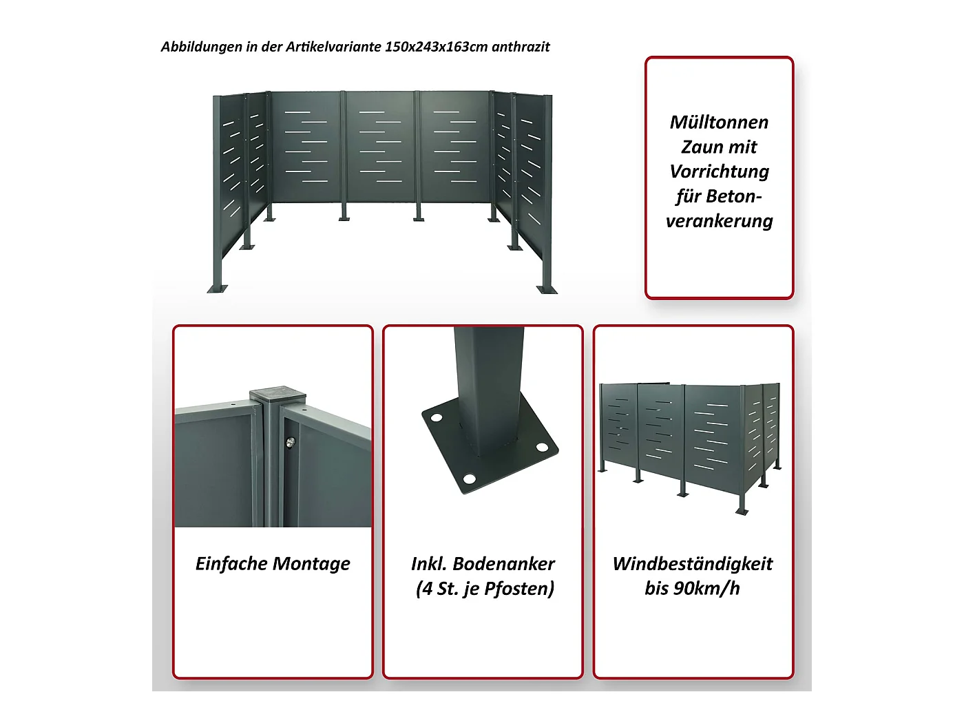 4-delige afvalbakbekleding MCW-O67, antraciet roestvrij staal
