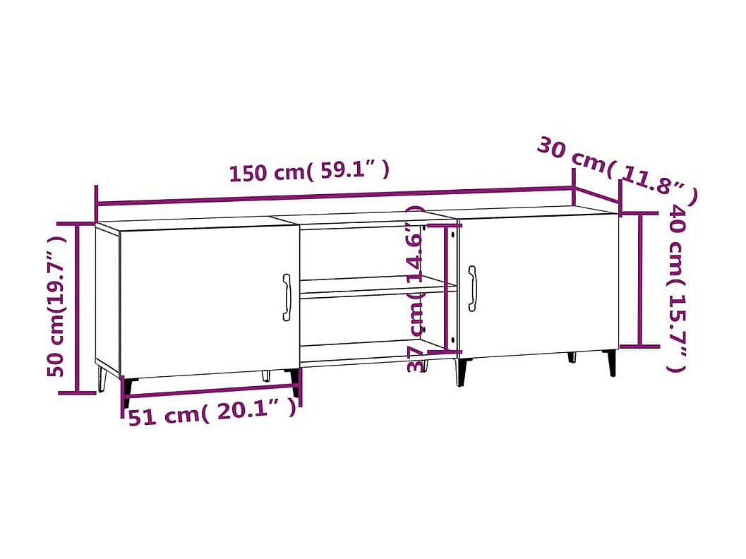 Aglish Tv-meubel 150x30x50 cm bewerkt hout betongrijs