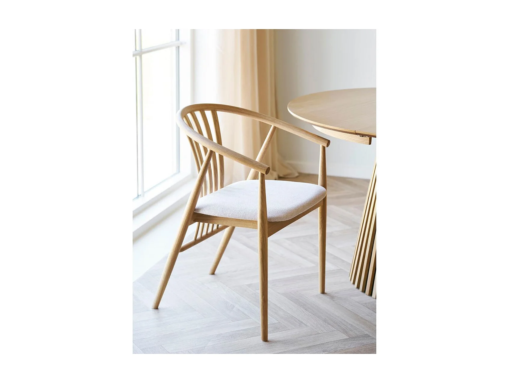 DUNKIRK eetkamerstoel van massief eikenhout en beige stof