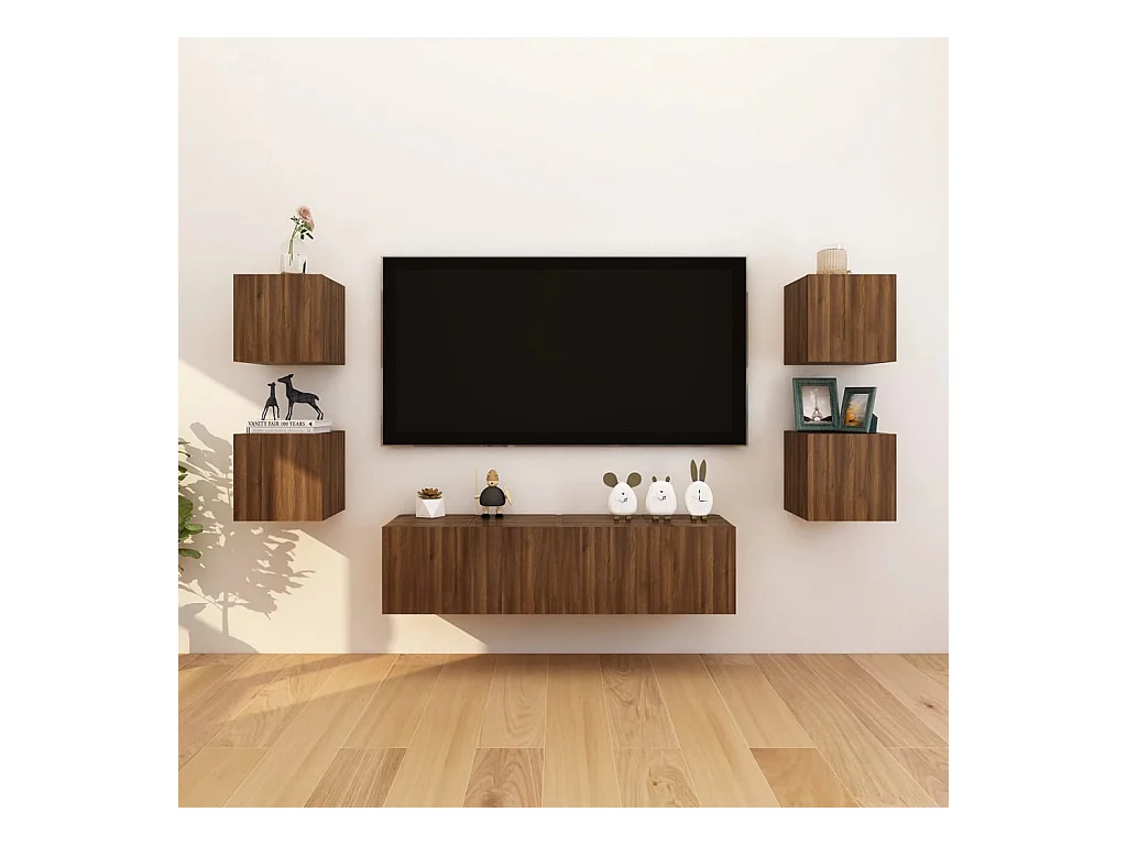 Ahakista Tv-wandmeubelen 4 st 30,5x30x30 cm bruin eikenkleur