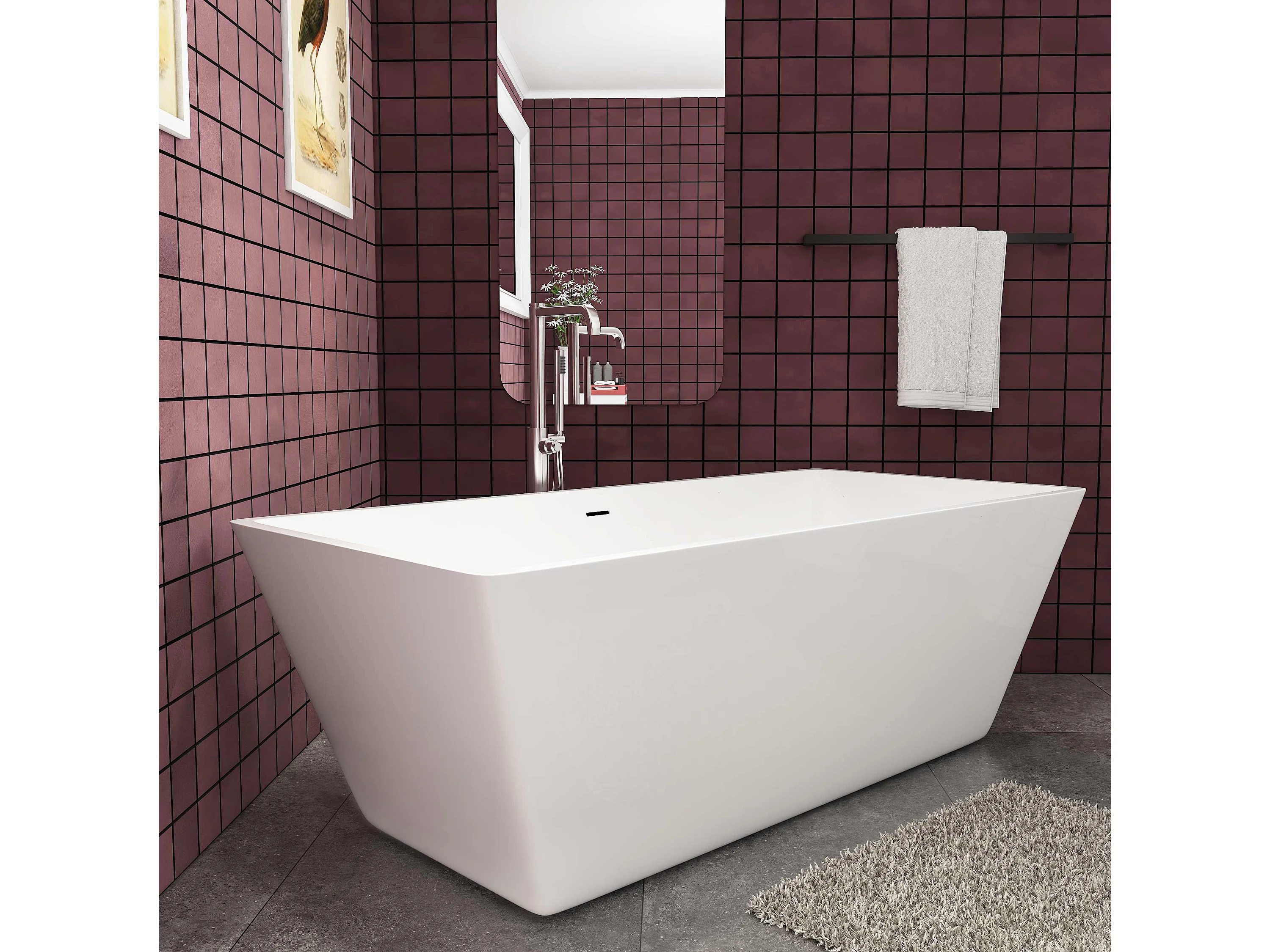 Aica 150x72x56 cm Functioneel Vrijstaand wit Acrylbad Rechthoekig met Uitstekende Warmte-isolatie en Afvoerset