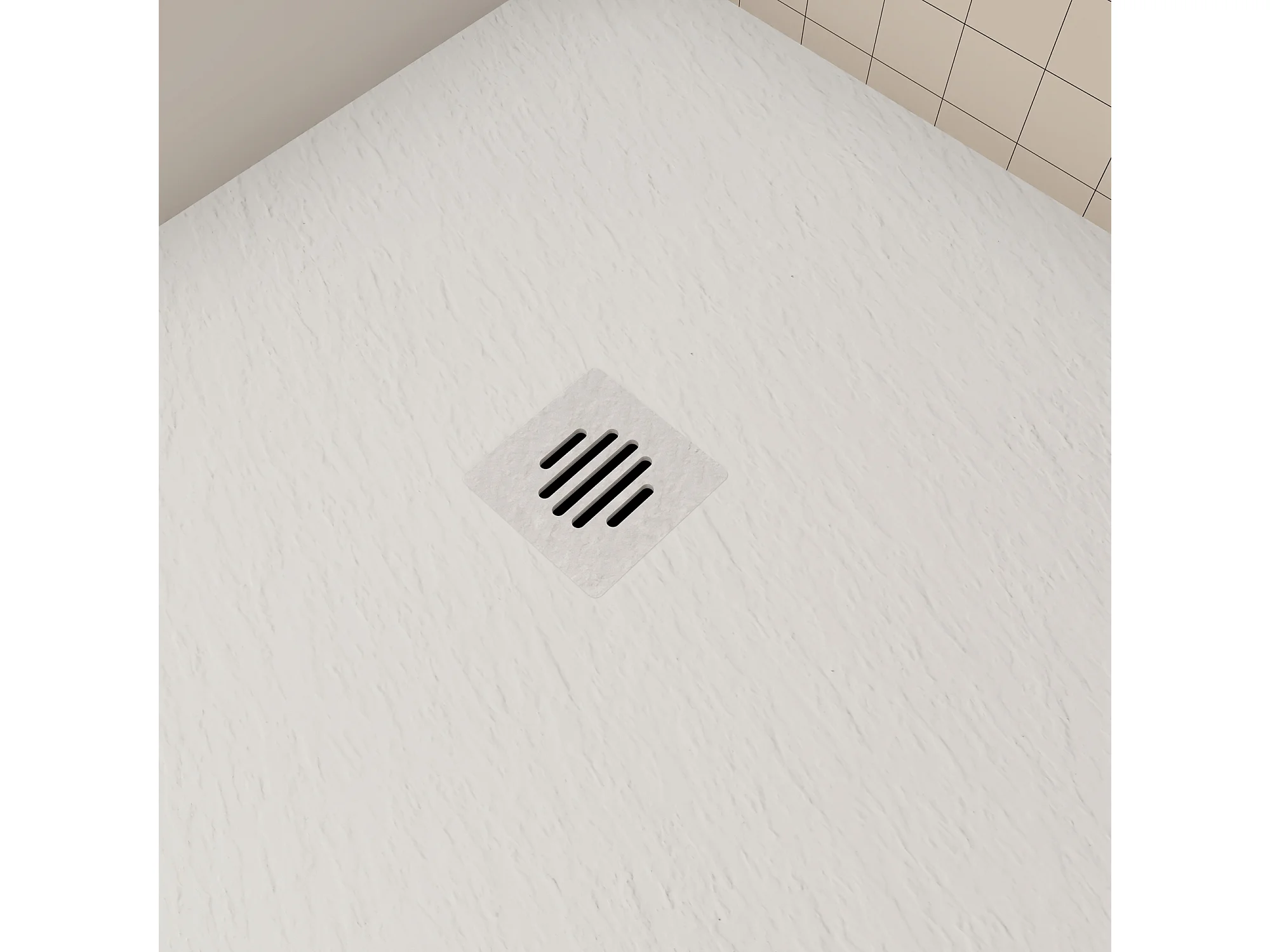 Aica 80x80x3cm witte douchebak (Slate leisteenlook),vierkant,gemaakt mengsel van natuursteen en hars,antislip,antibacterieel plastic douchegoot rooster