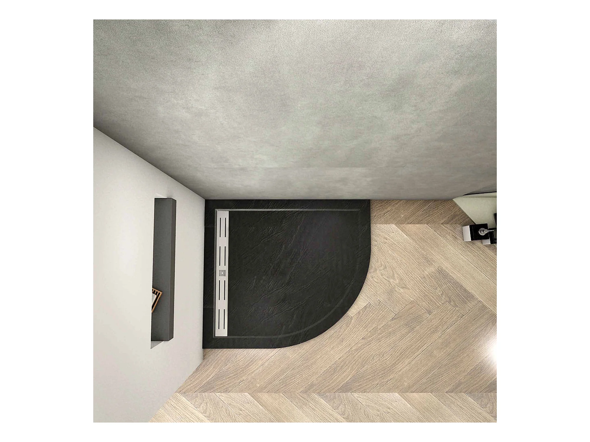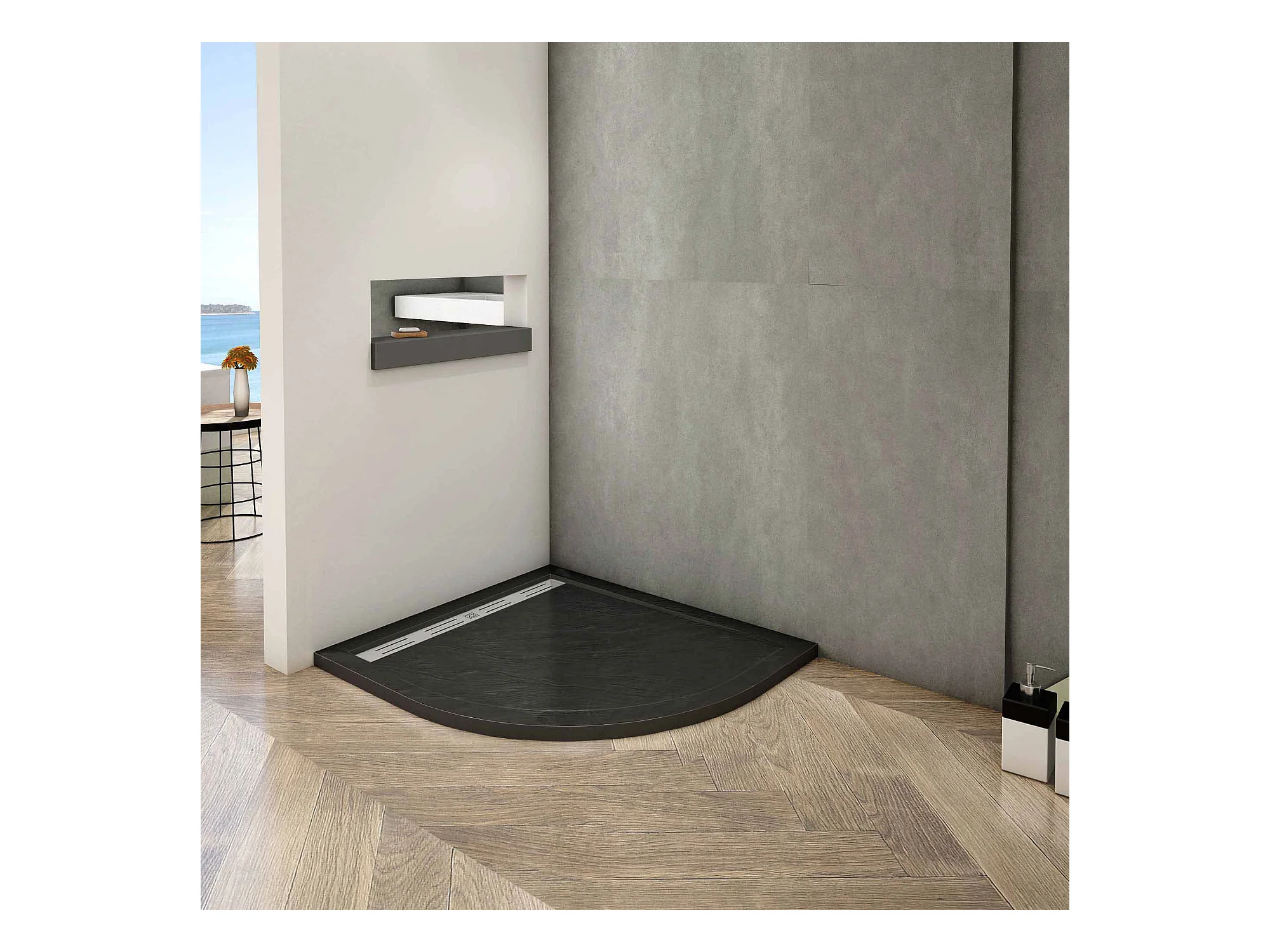 Aica 90x90x3cm zwart douchebak, gebogen,gemaakt van een mengsel van natuursteen en hars, antislip, antibacterieel, met douchegoot rooster
