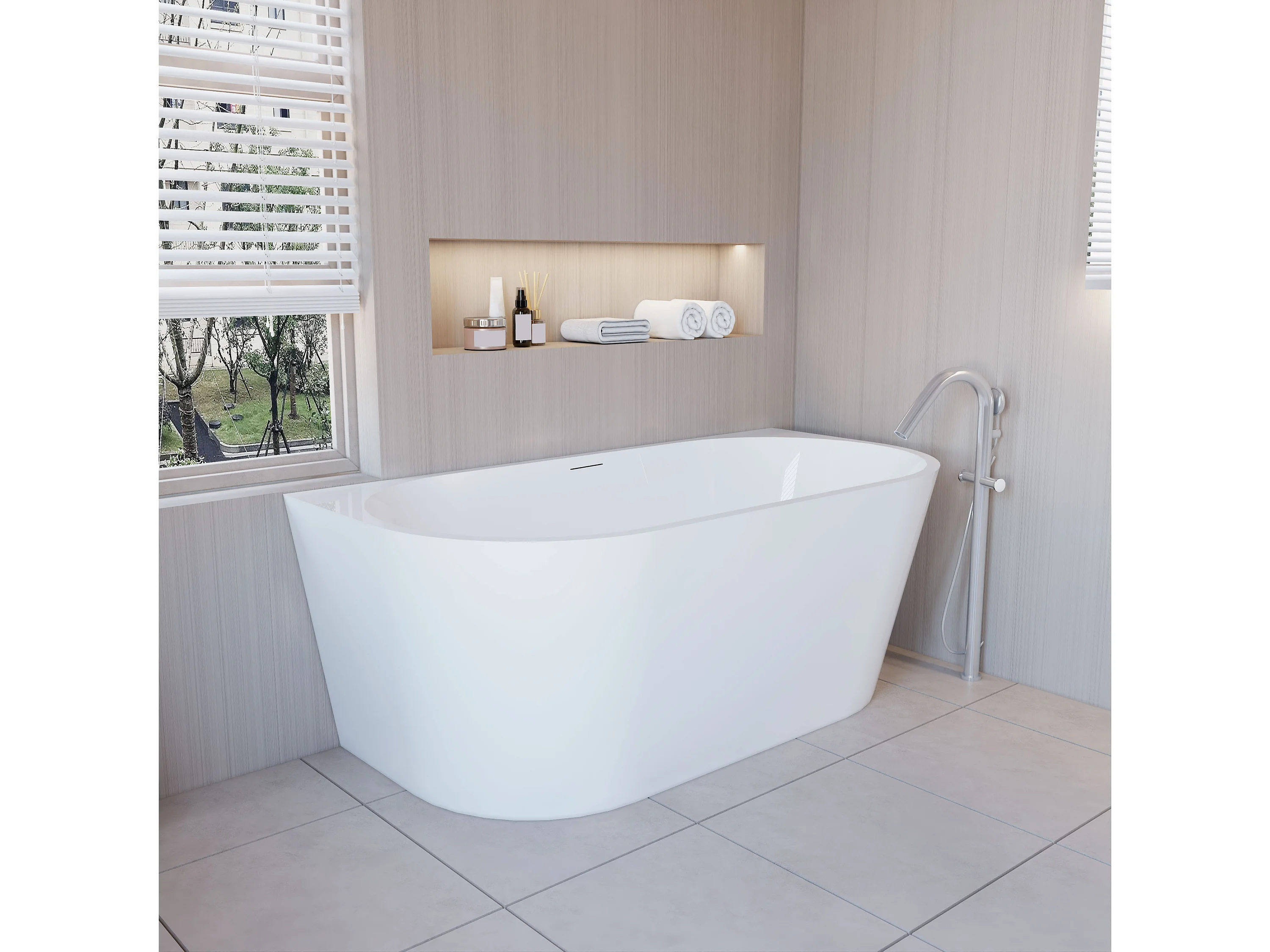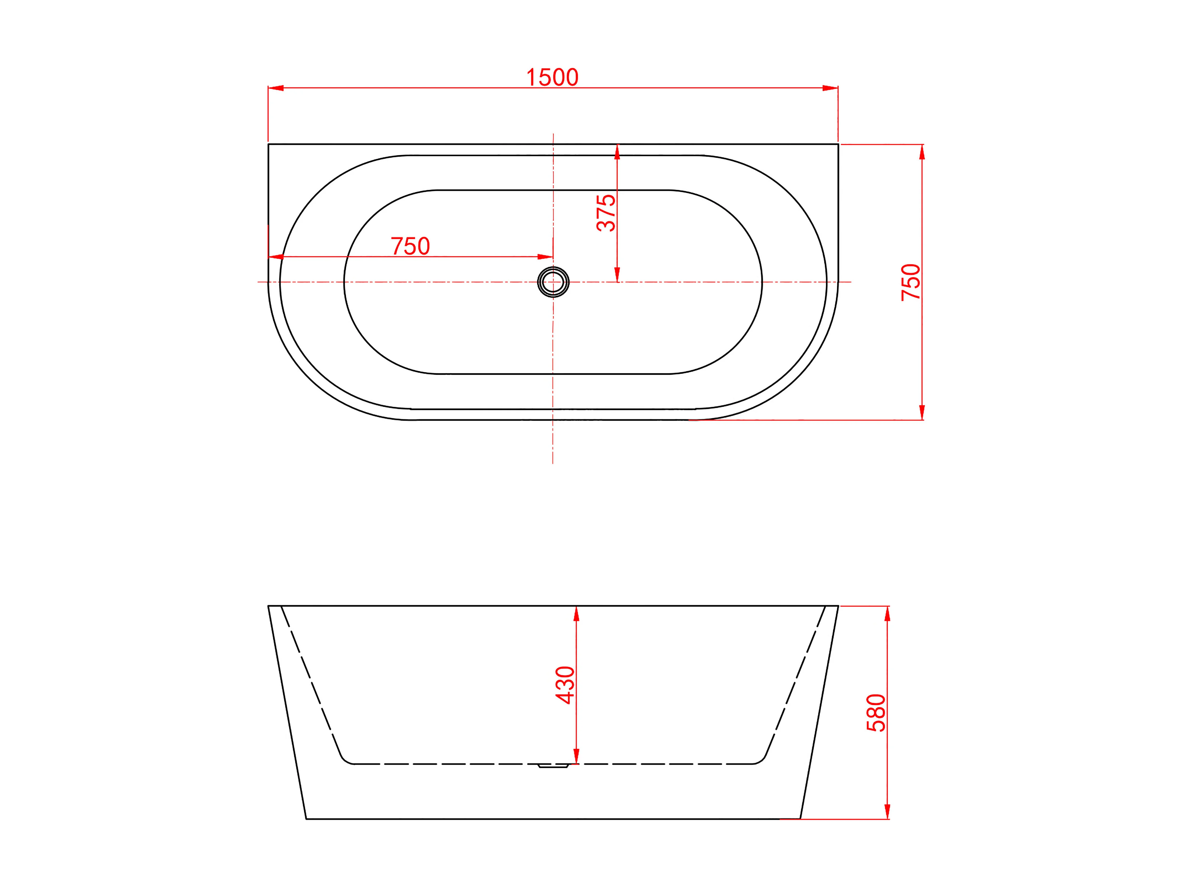Aica Halfvrijstaand Bad 150x75x58 cm-Helder Wit-Acryl-Met Afvoer-Eenvoudig te Installeren