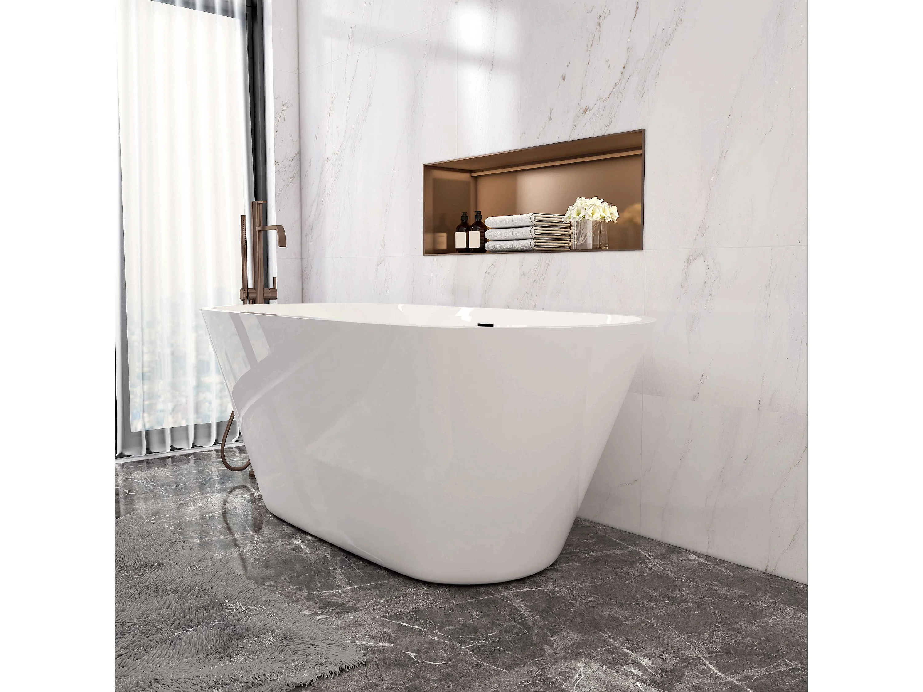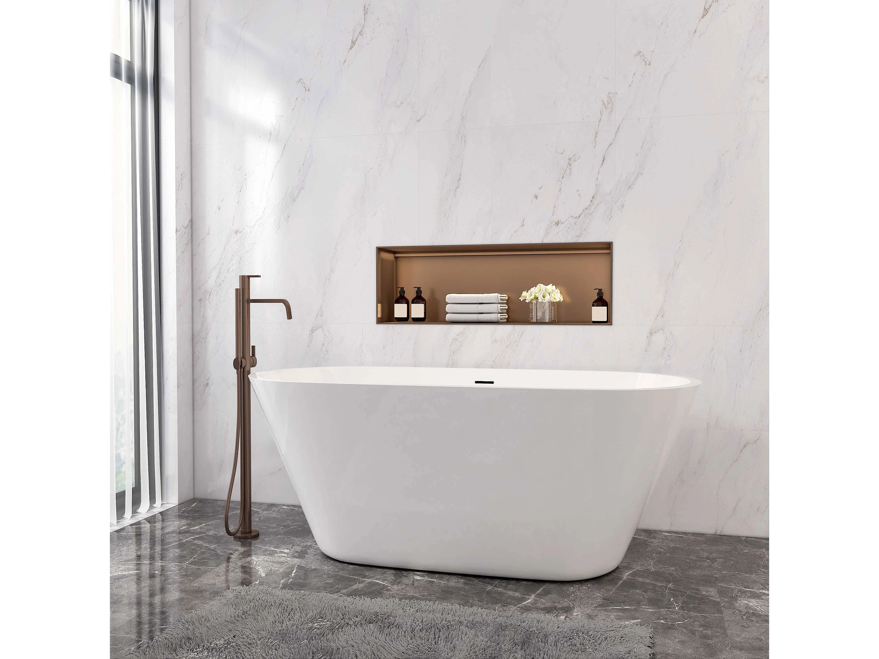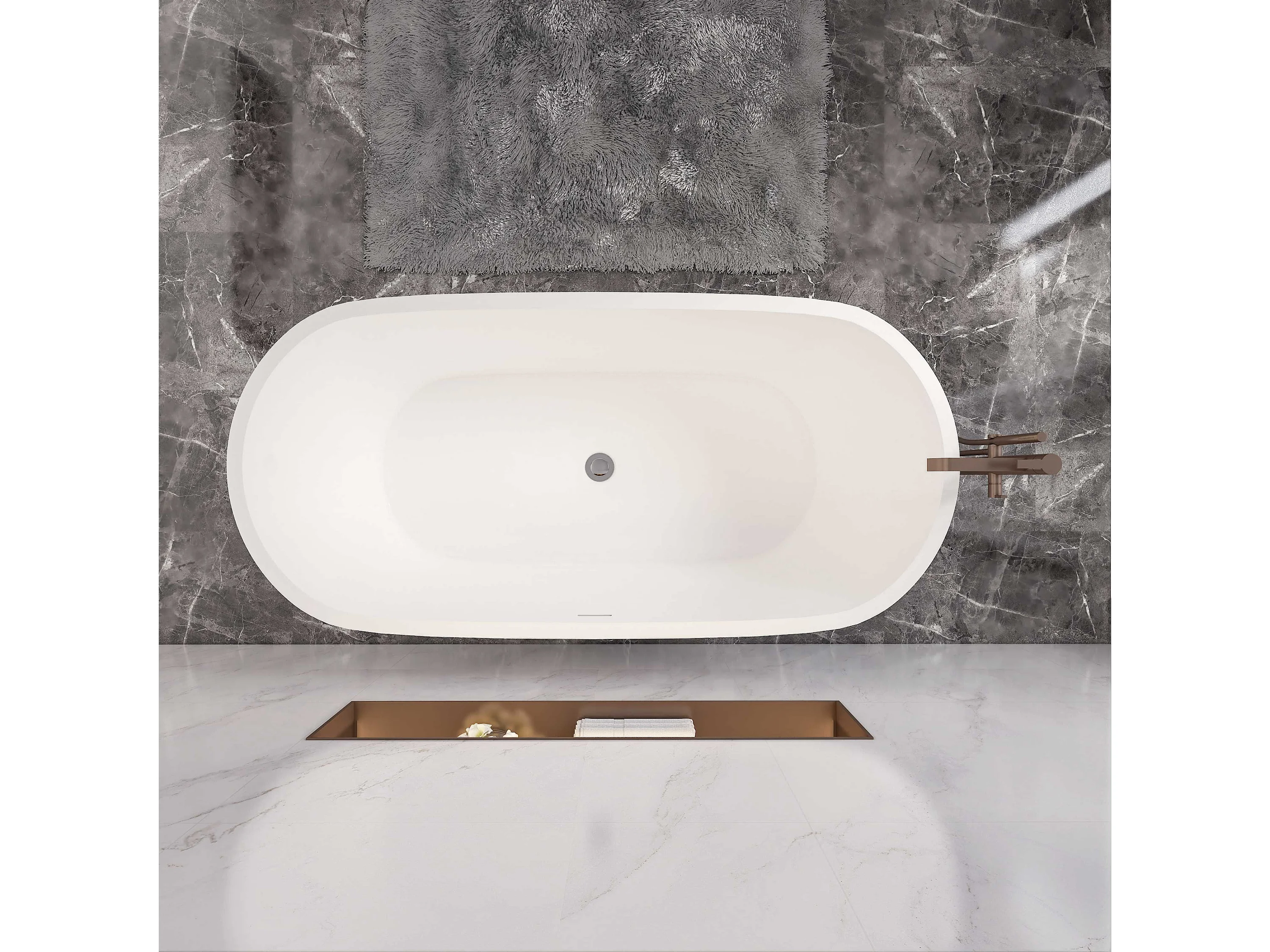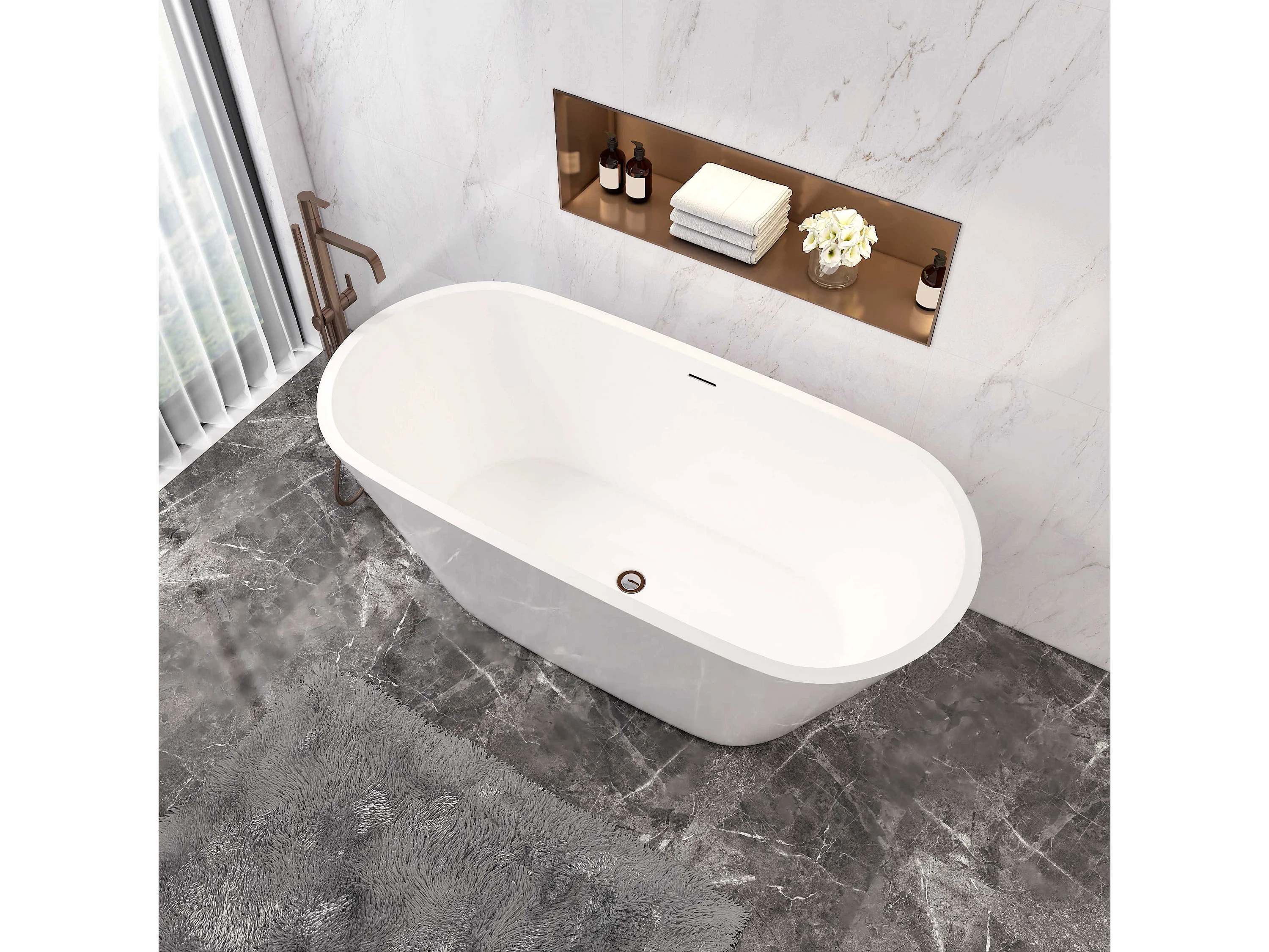 Aica L:150xB:70xH:58 cm Vrijstaand Bad Ovaal in mat wit acryl,met overloop en afvoer