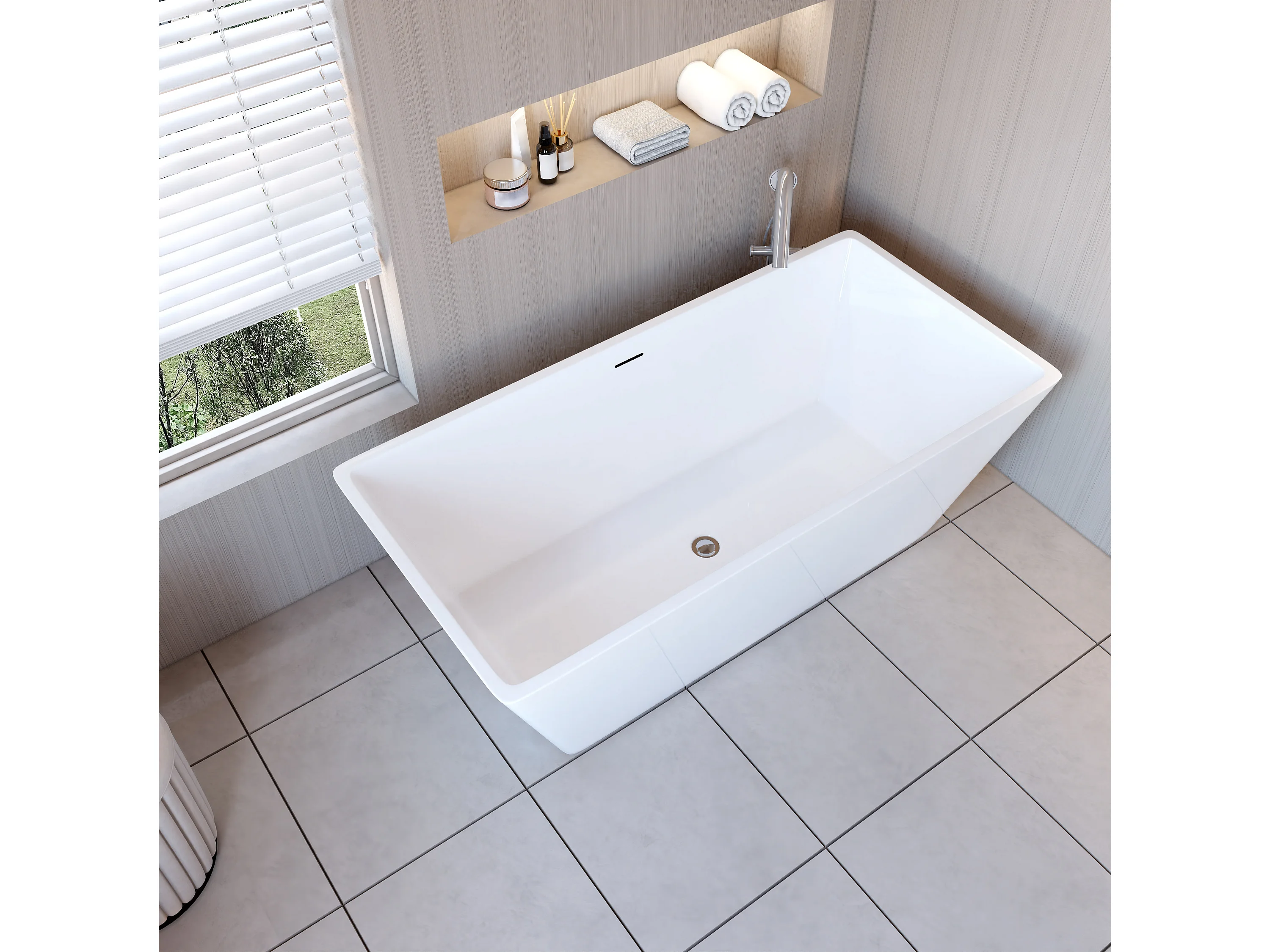 Aica L:150xB:72xH:56 cm vrijstaand rechthoeking bad in mat wit afwerking acryl,met overloop met afvoer