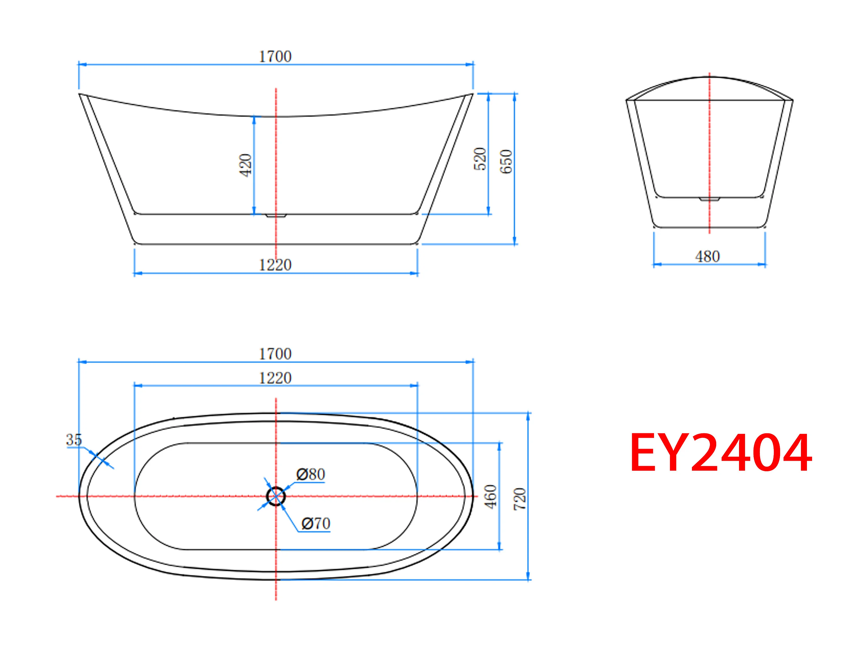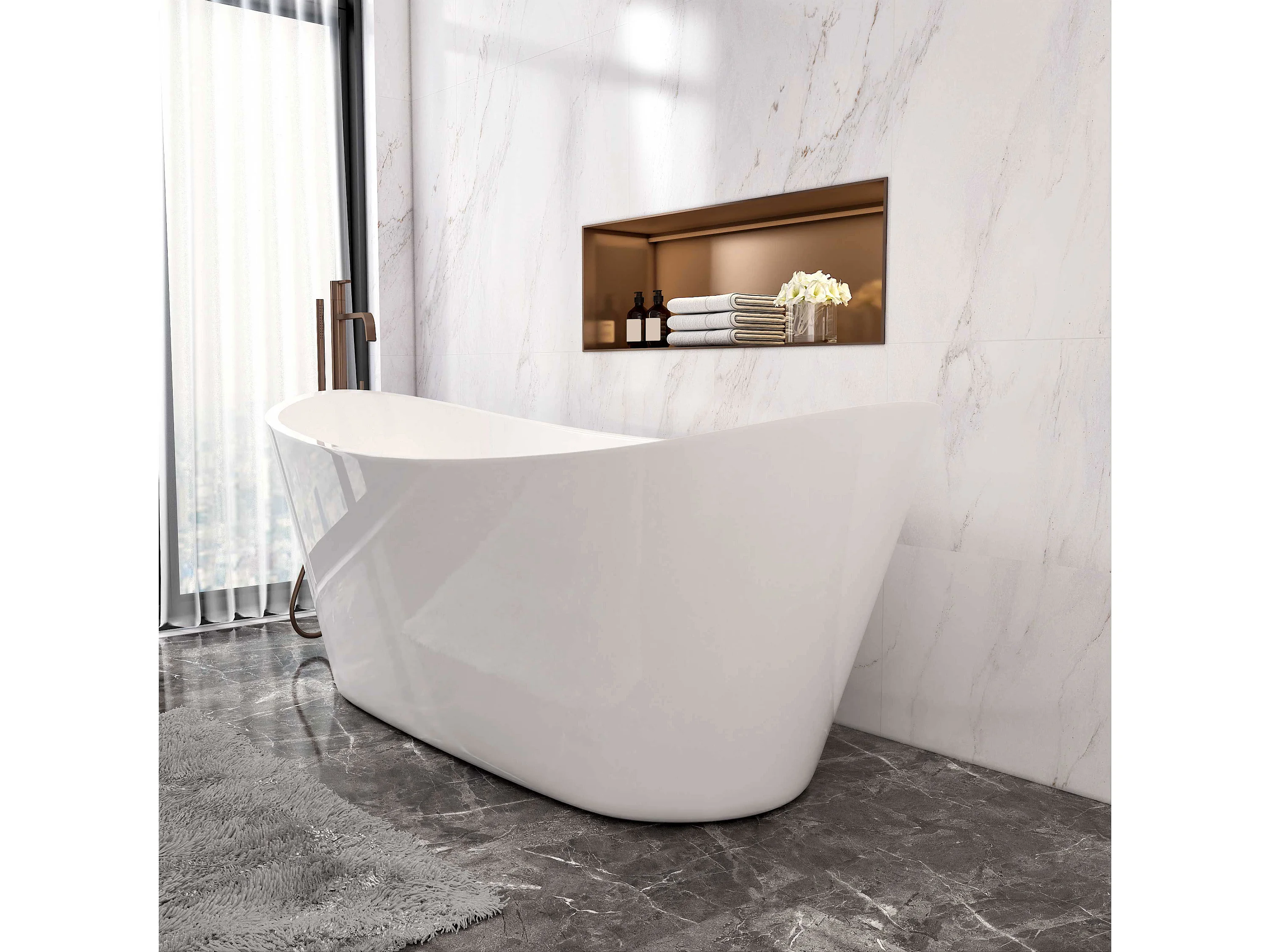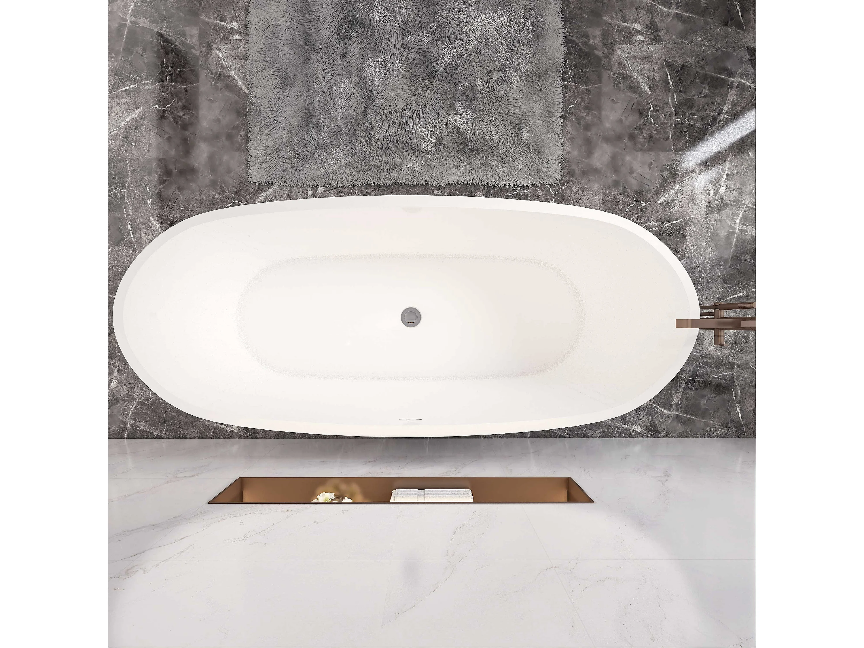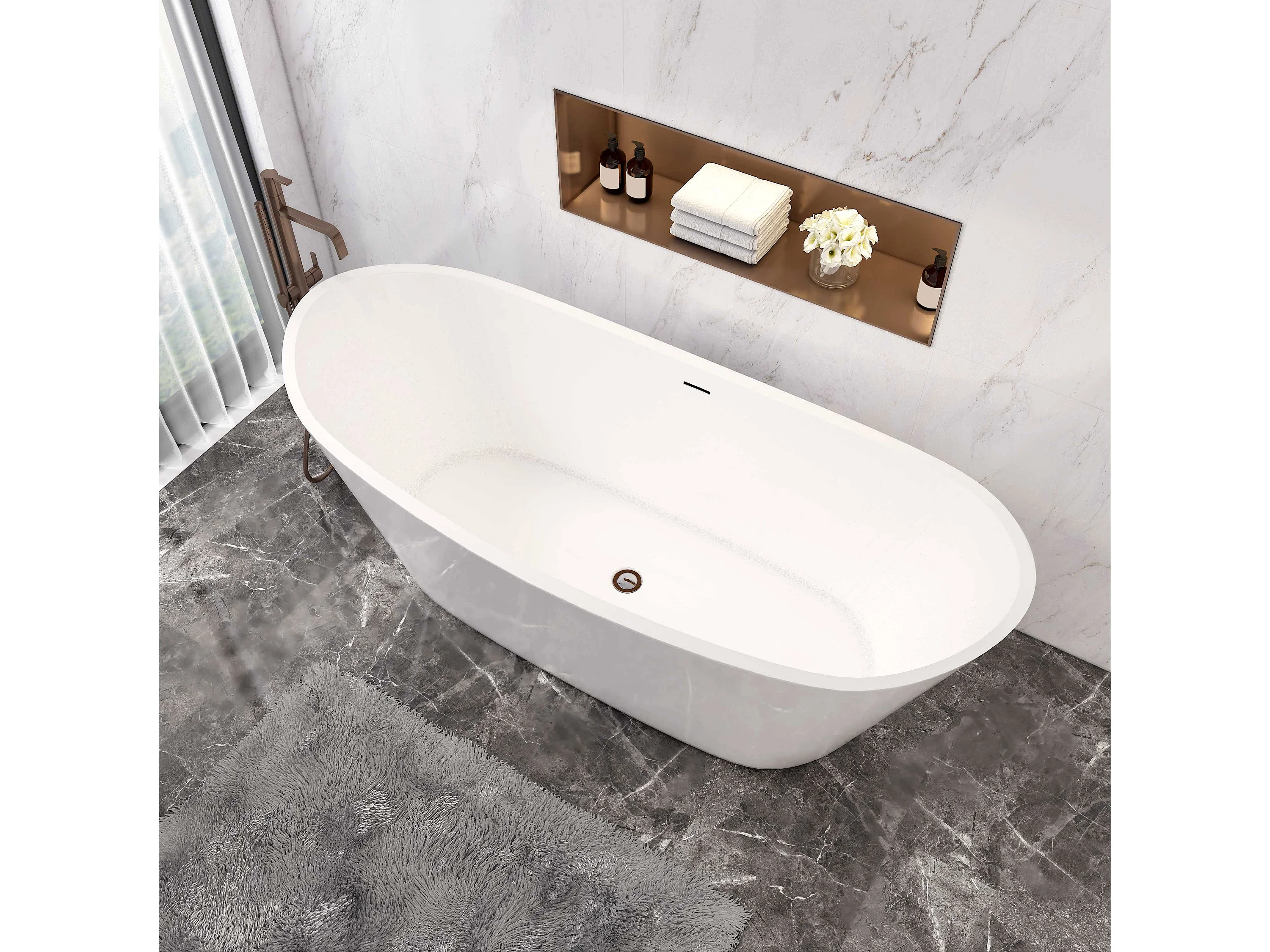 Aica L:170xB:72xH:65 cm,ovaal vrijstaand bad met twee rugleuningen mat wit acryl,met overloop en afvoer