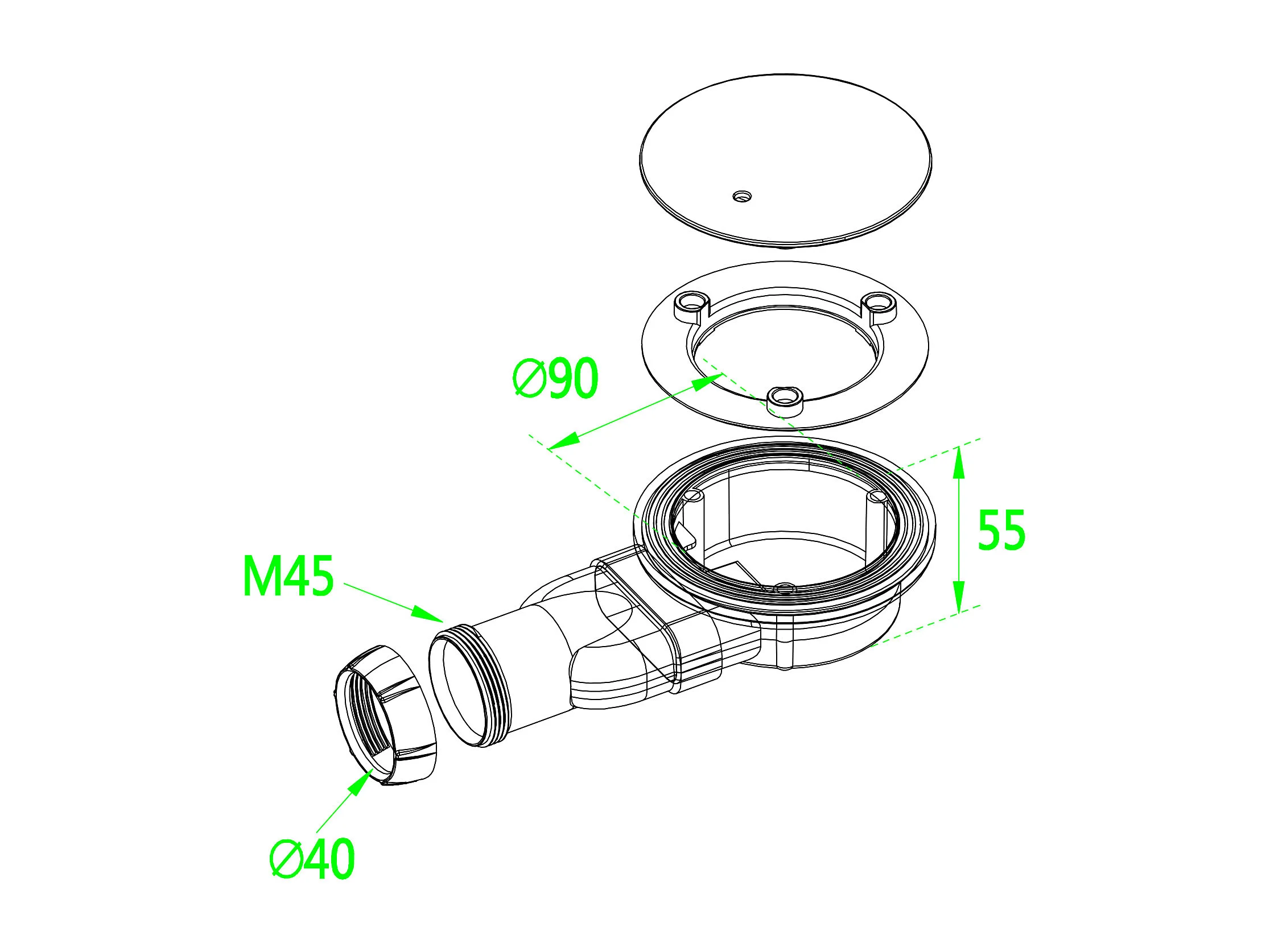 Aica 90x90x3cm witte douchebak (Slate leisteenlook), vierkant,gemaakt mengsel van natuursteen en hars, antislip, antibacterieel, met plastic Afvoerset