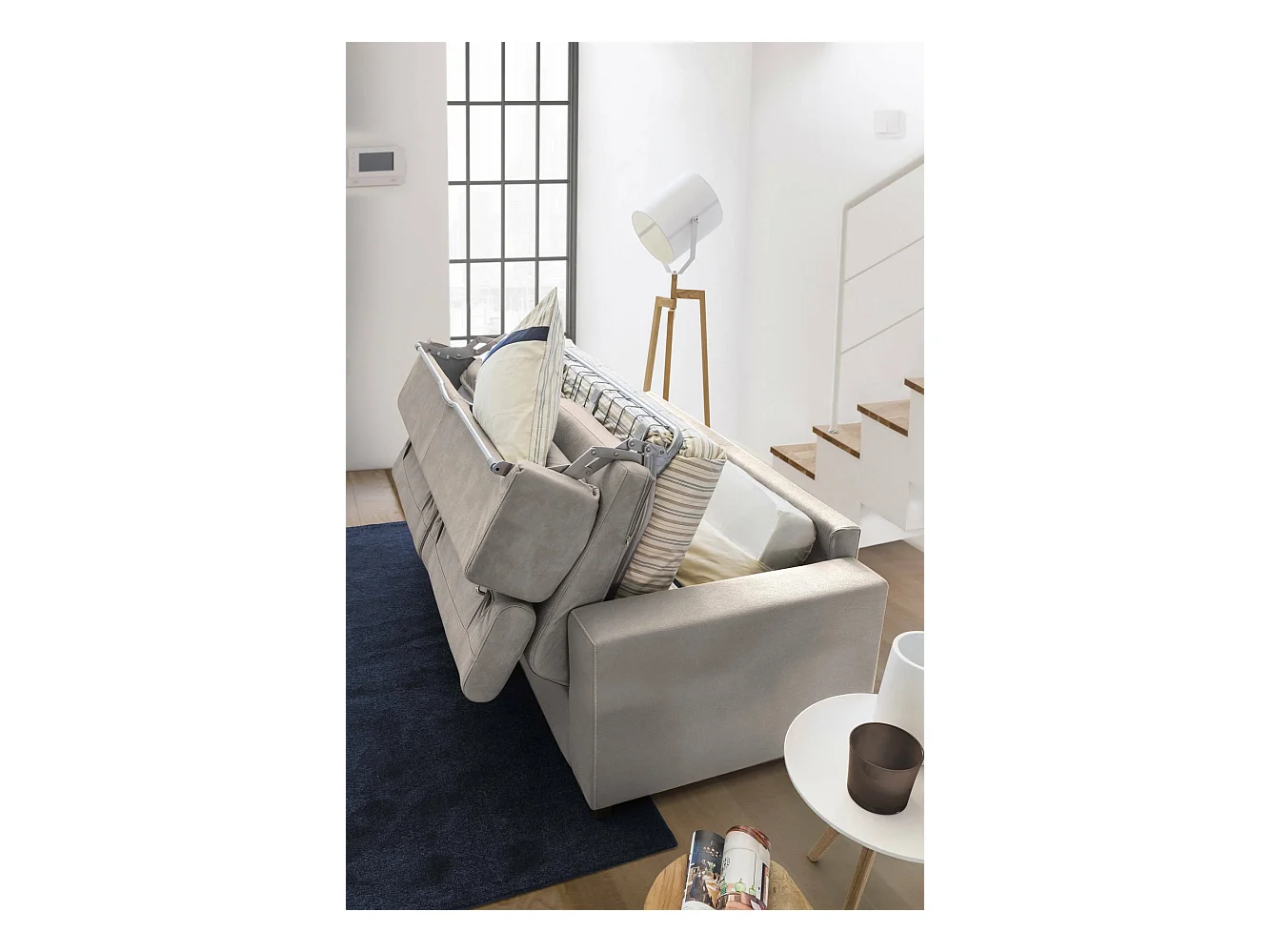 Aiko Slaapbank, 3-zitsbank, 100% Made in Italy, Woonkamerbank met draaibare opening, met verstelbare hoofdsteunen en standaard armleuningen, 220x95h85 cm, Taupe
