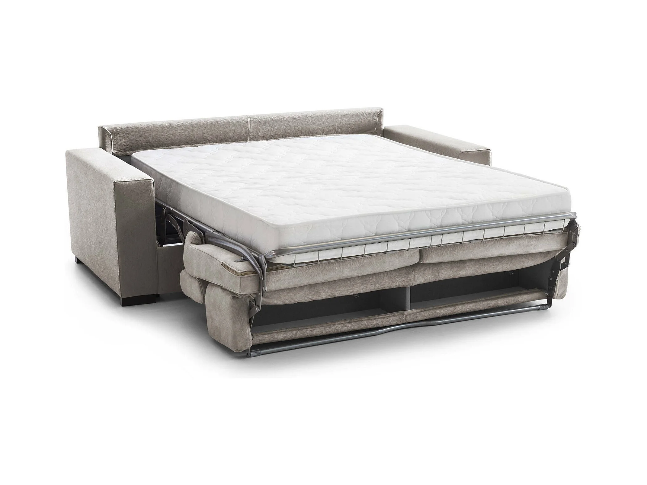 Allegra Slaapbank, 3-zitsbank, 100% Made in Italy, Woonkamerbank met trolley-opening, in gewatteerde stof, inclusief kussens, 165x90h85 cm, Taupe