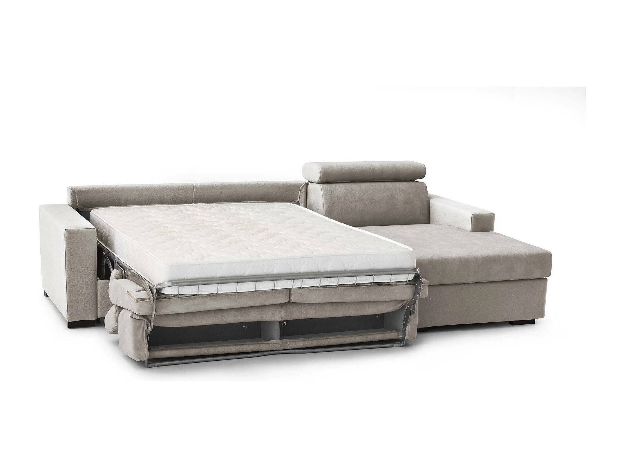Alberta Slaapbank, Hoekbank, 100% Made in Italy, Bank met draaibare opening, met opbergschiereiland rechts, met standaard armleuningen, 280x95h85 cm, Taupe