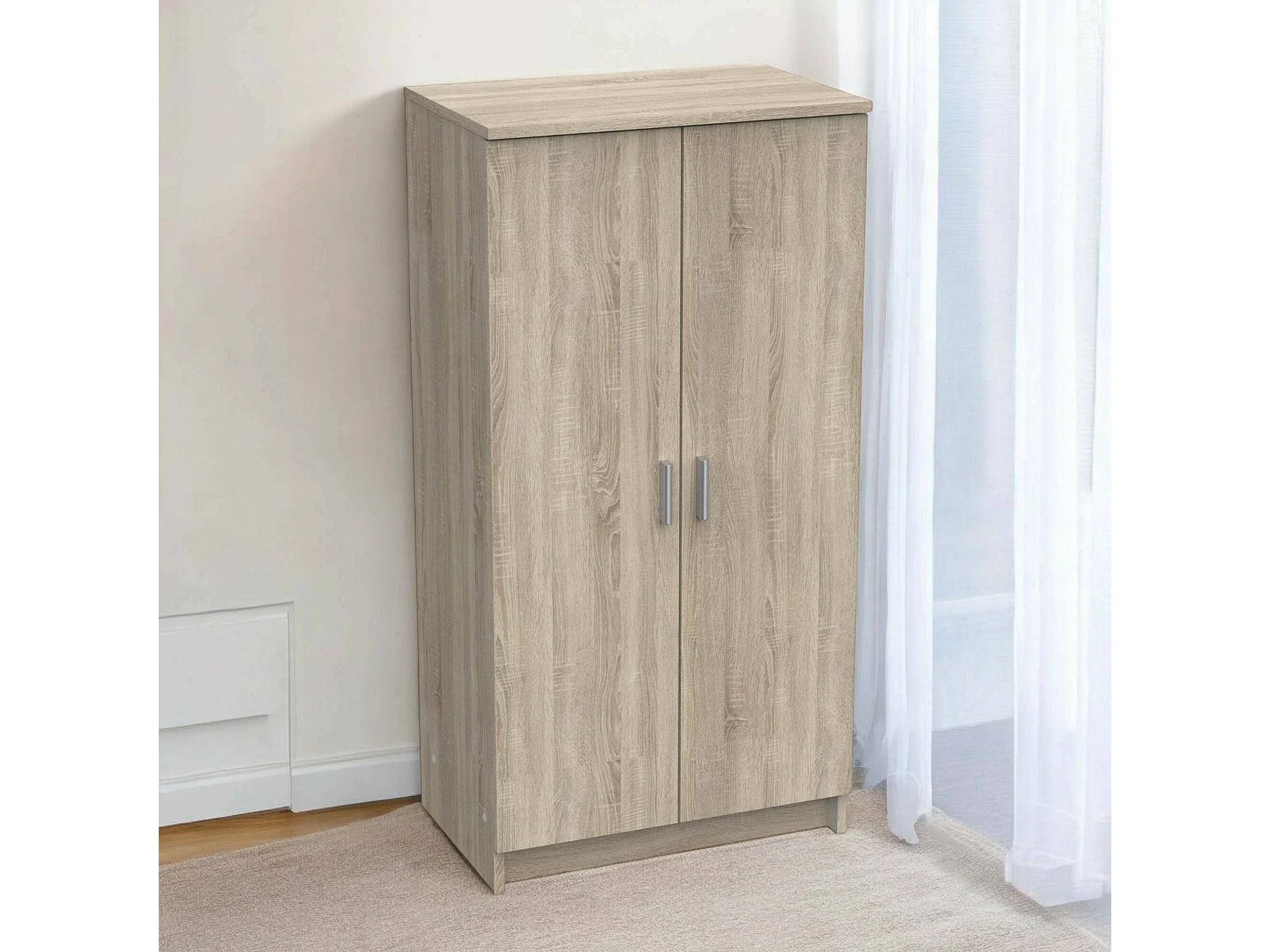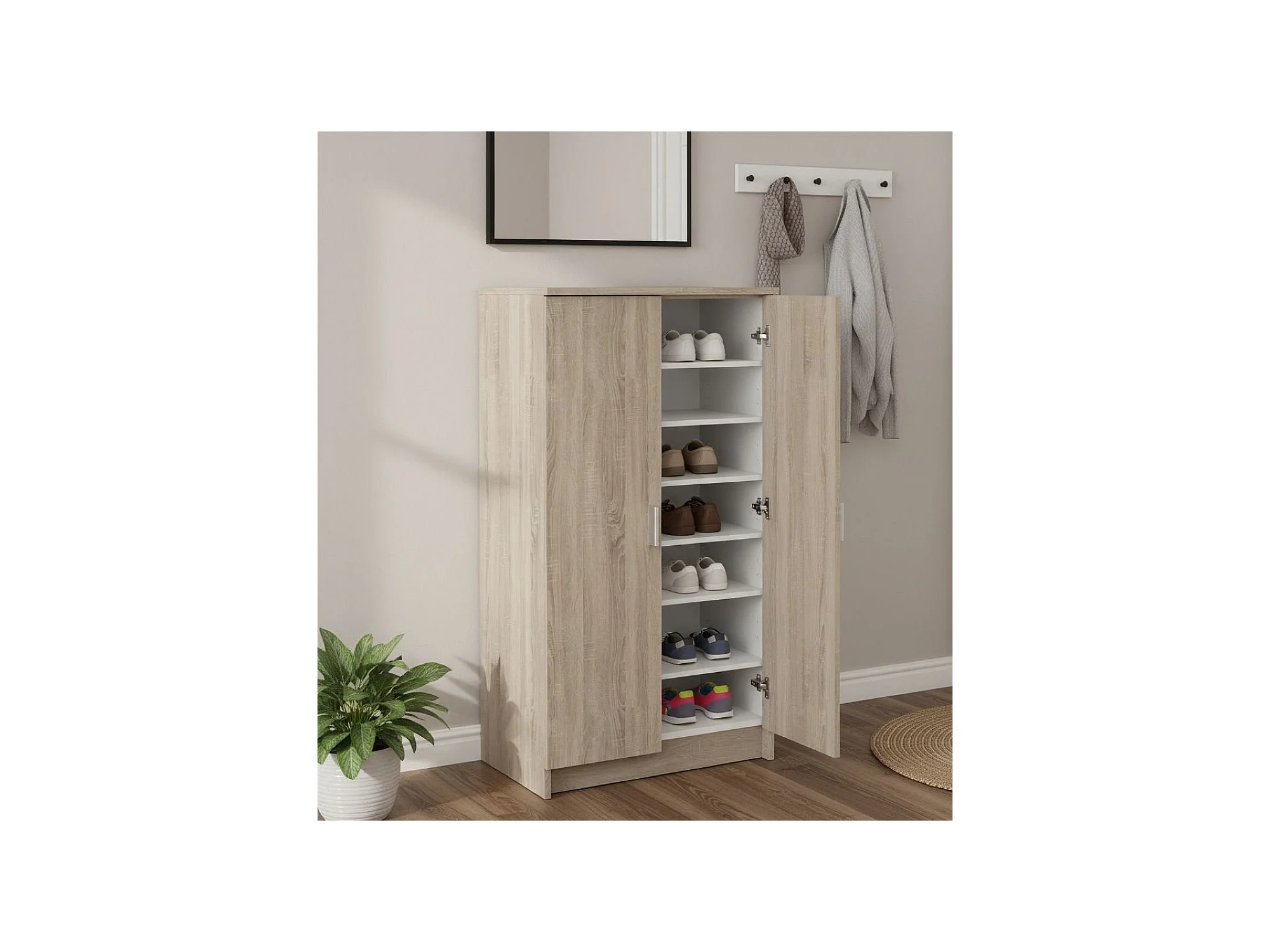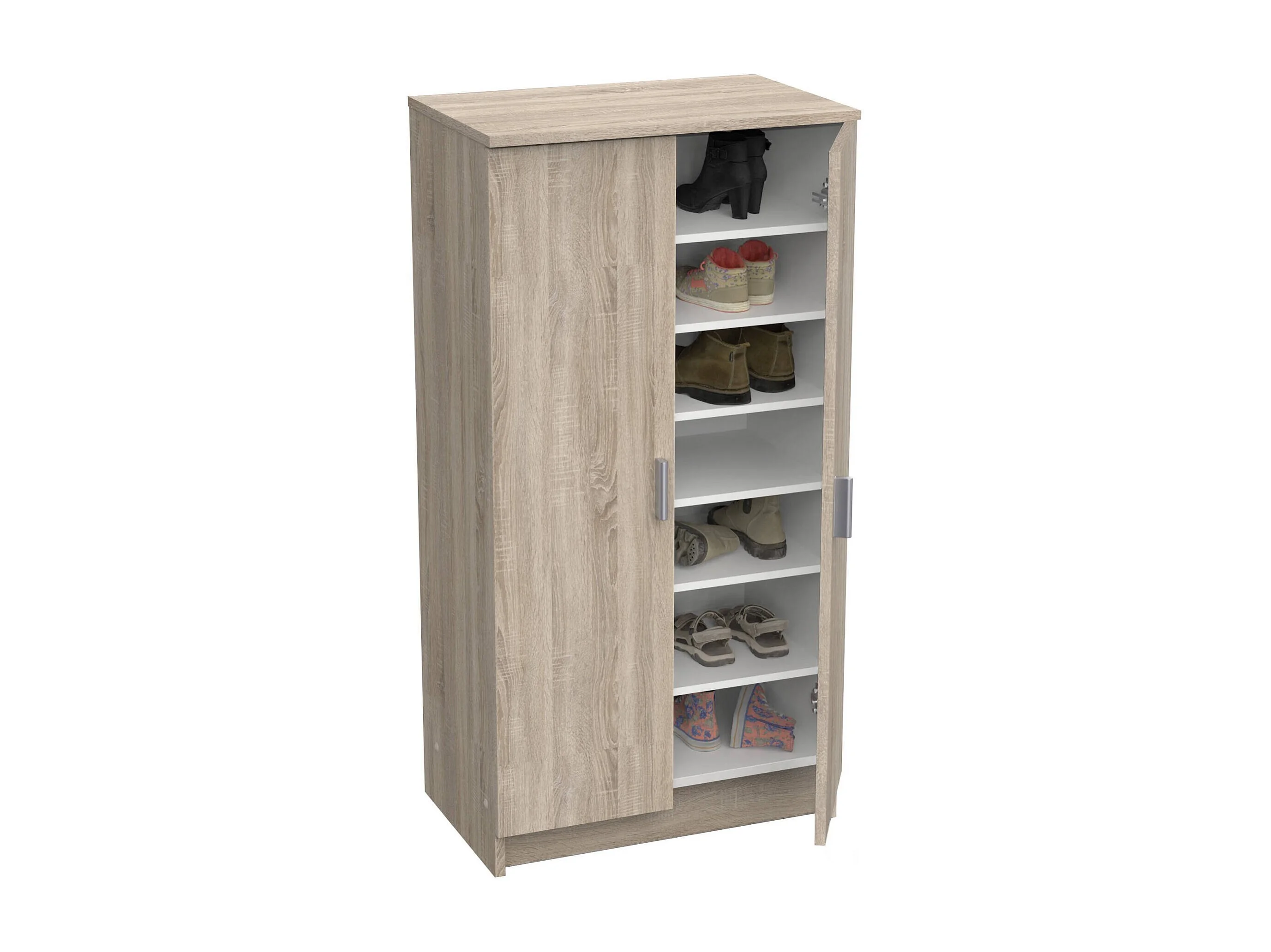 Dmora Schoenenkast Alcudia 35,3x54,6x108,4h cm Eiken Bruin 6 Planken 2 Deuren, Schoenenrek 7 Compartimenten