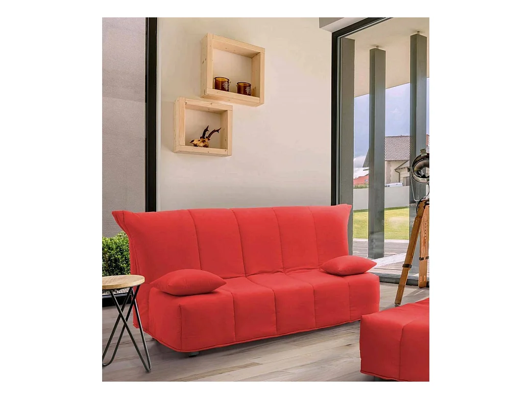 Pinto slaapbank, 3-zits lineaire containerslaapbank, Woonkamerbank in gewatteerde stof met klik-klakopening, 212x80h87 cm, Rood
