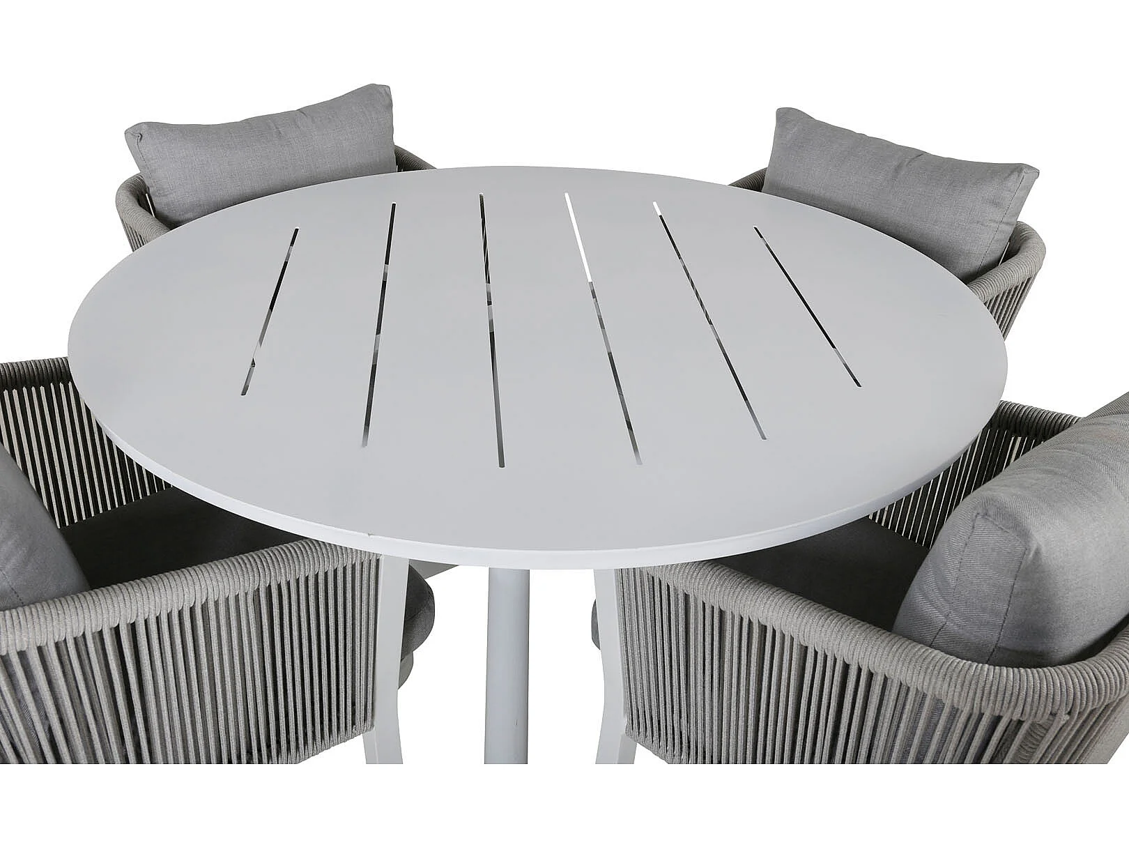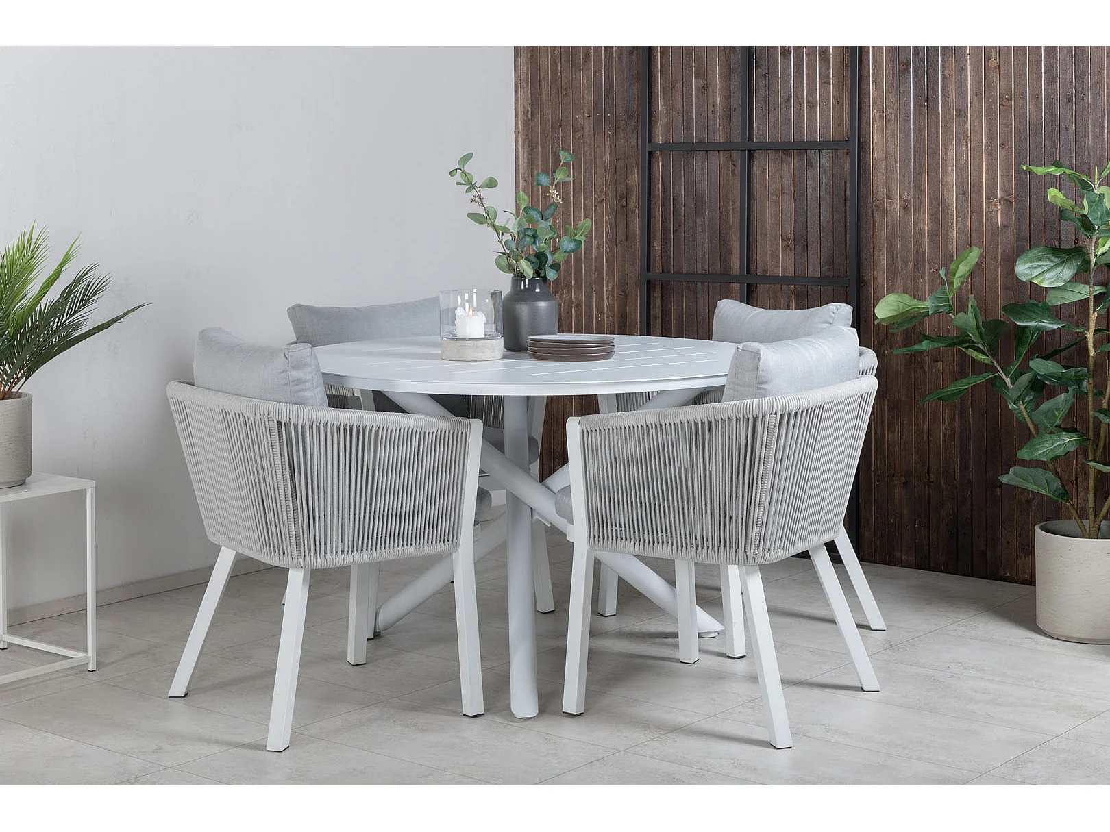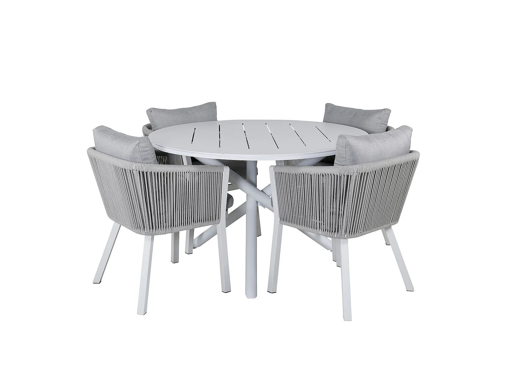 Alma tuinmeubelset tafel Ø120cm en 4 stoel Virya wit.