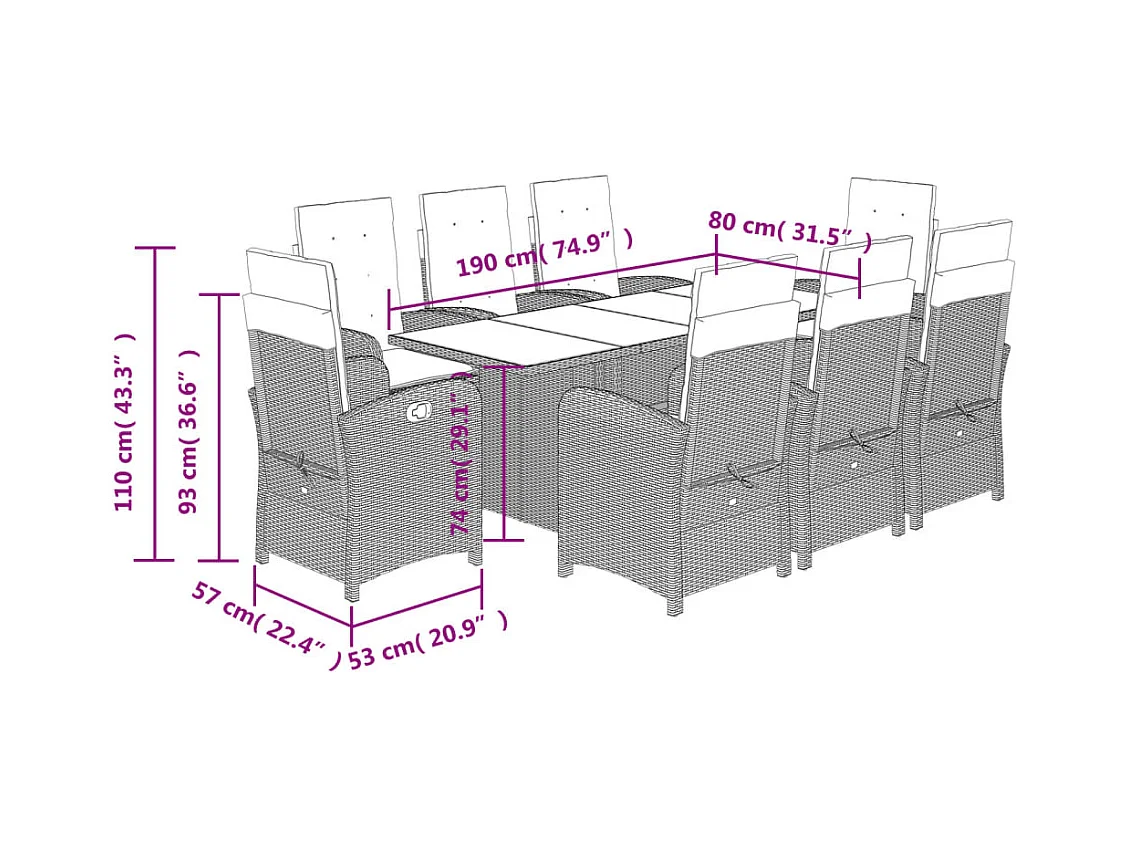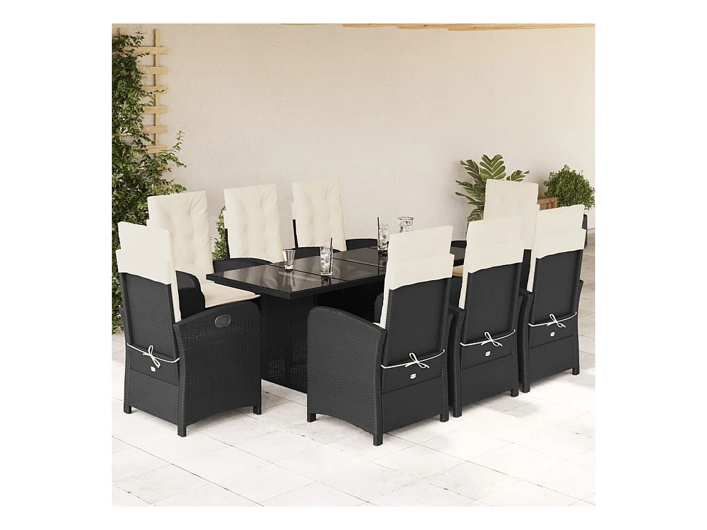 Cisternino 9-delige Tuinset met kussens poly rattan zwart en grijs