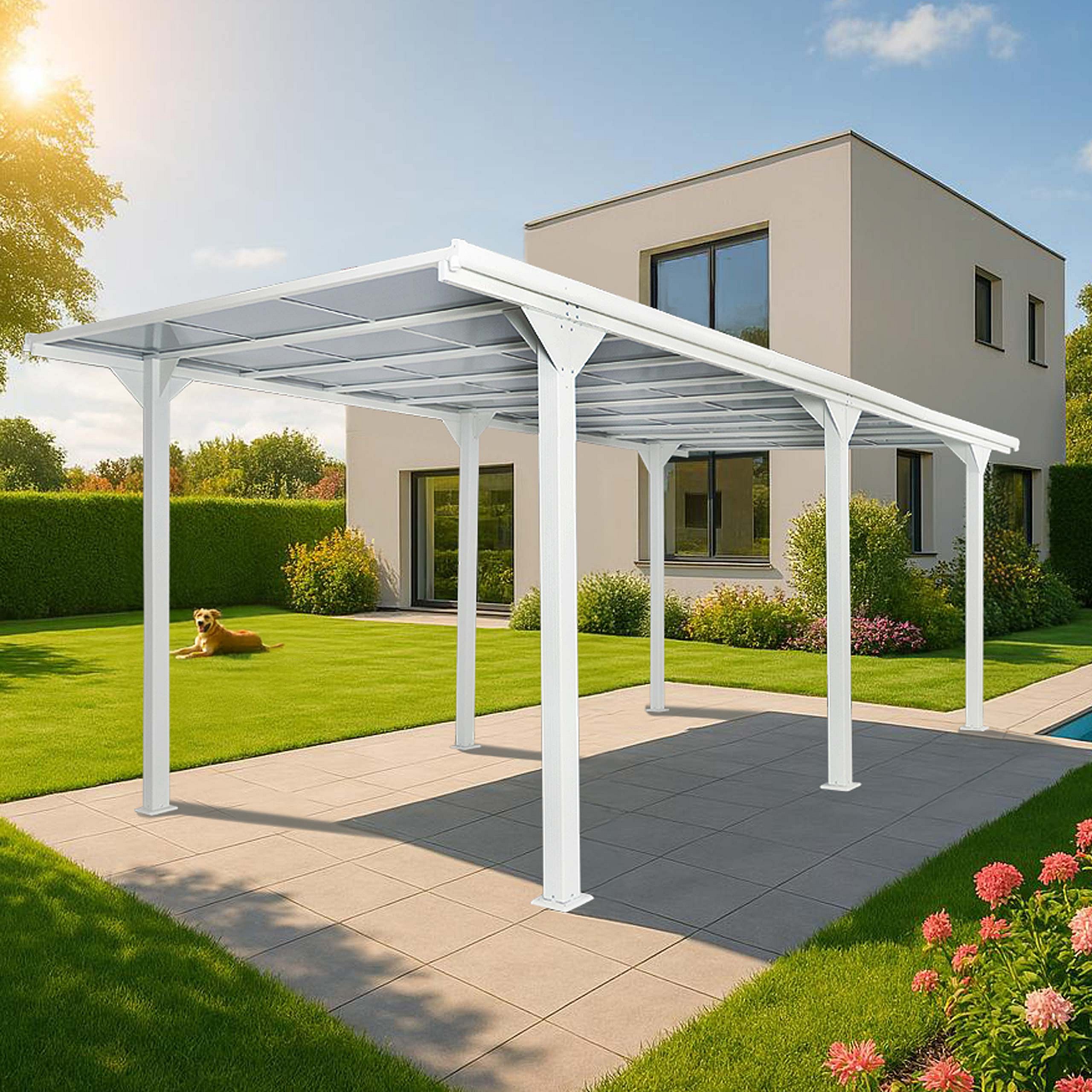 Muurpergola carport 3,75x3,05 m FERRATO 11,44 m² Aluminium Antraciet Grijs