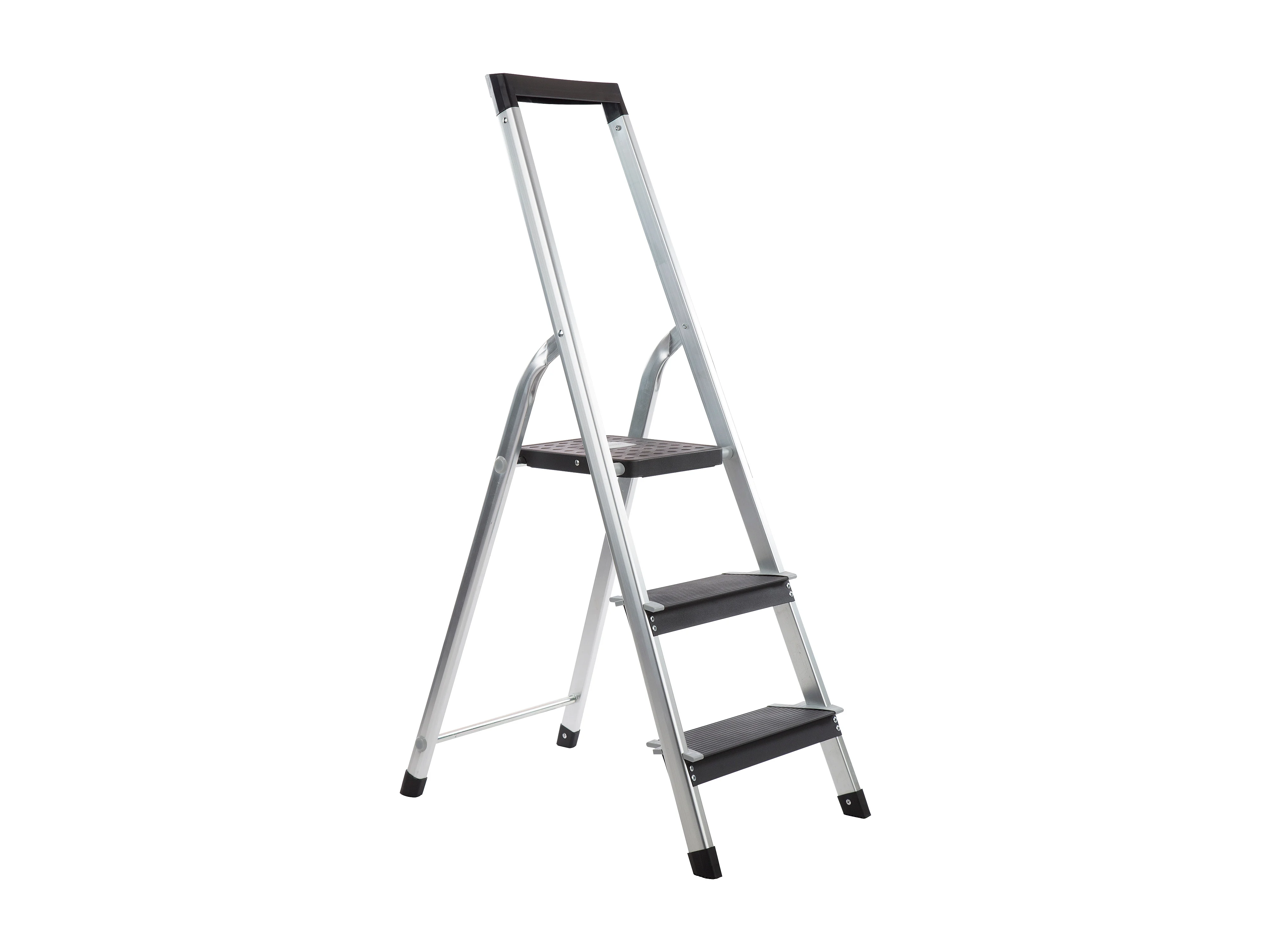 Aluminium trapladder met 3 treden, brede treden van 12 cm, toegangshoogte 2,60 m