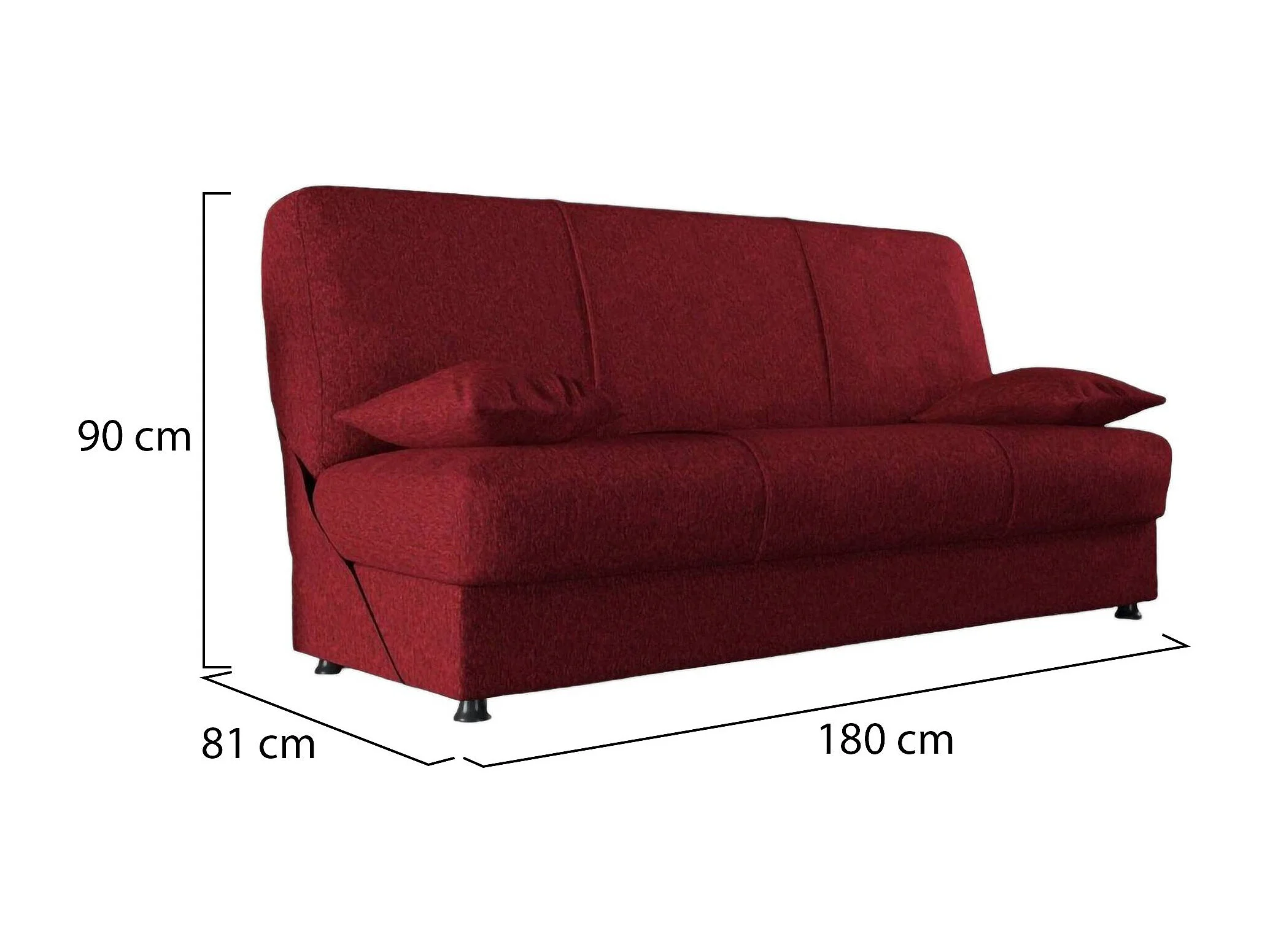 Dmora Driezits Slaapbank Alvaro 81x180 cm Zwart, Opbergruimte, Klikklak, Verstelbaar