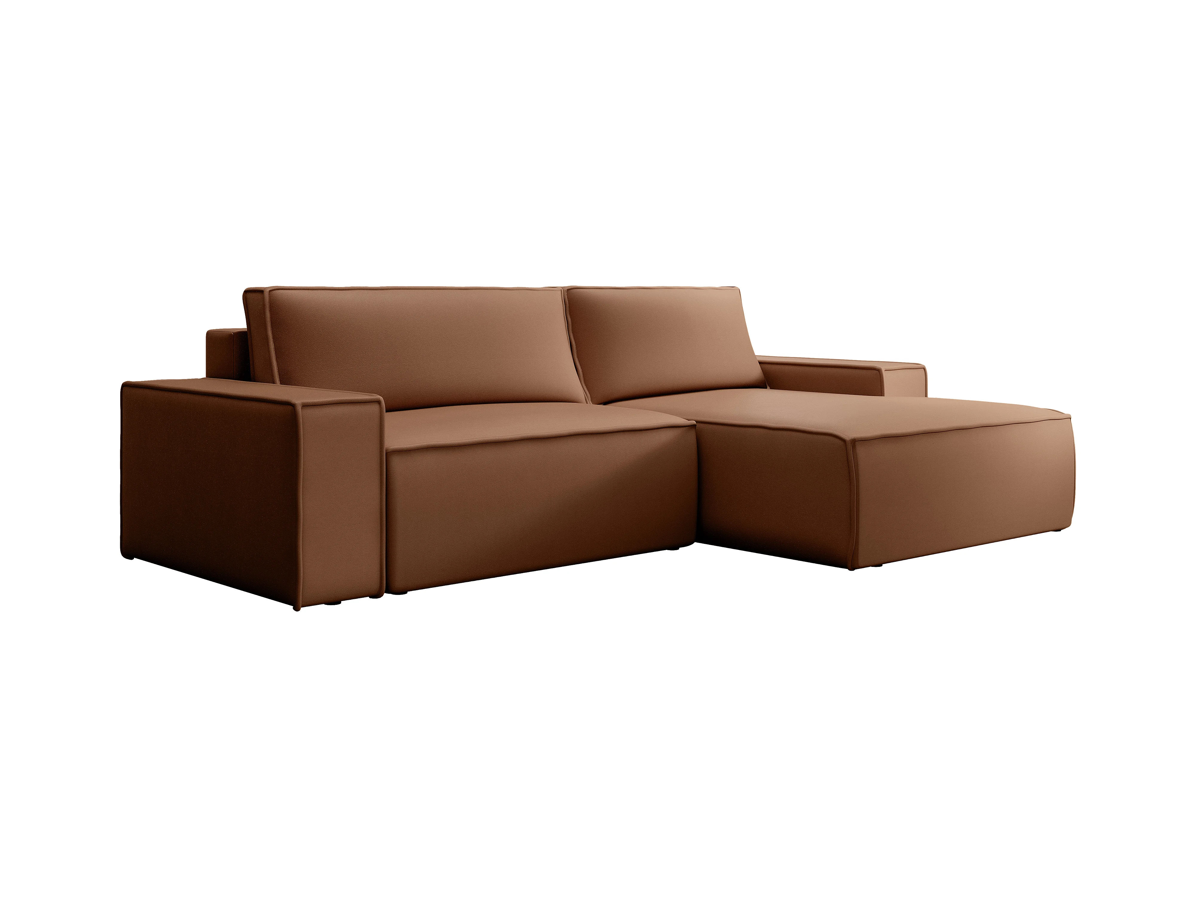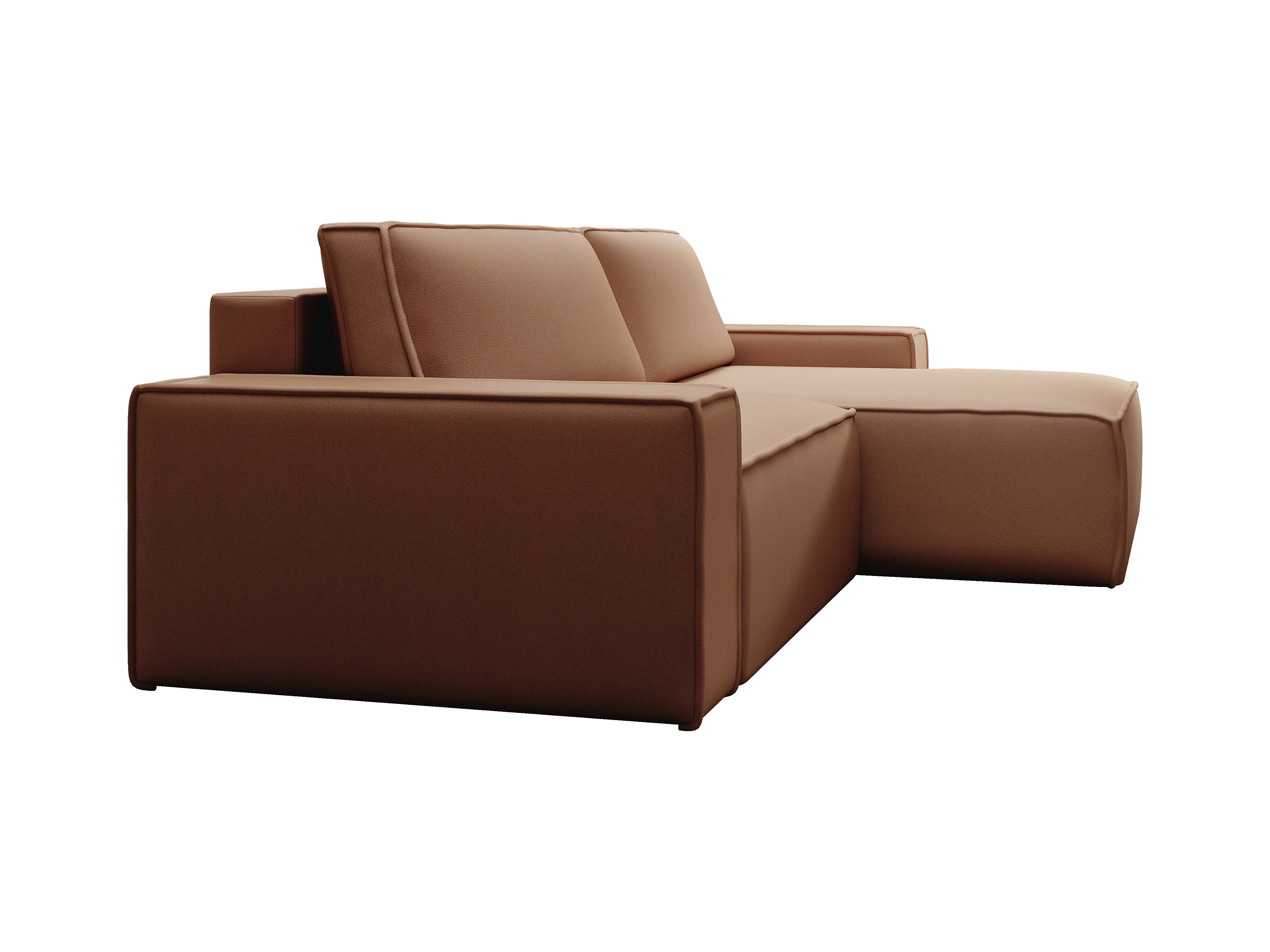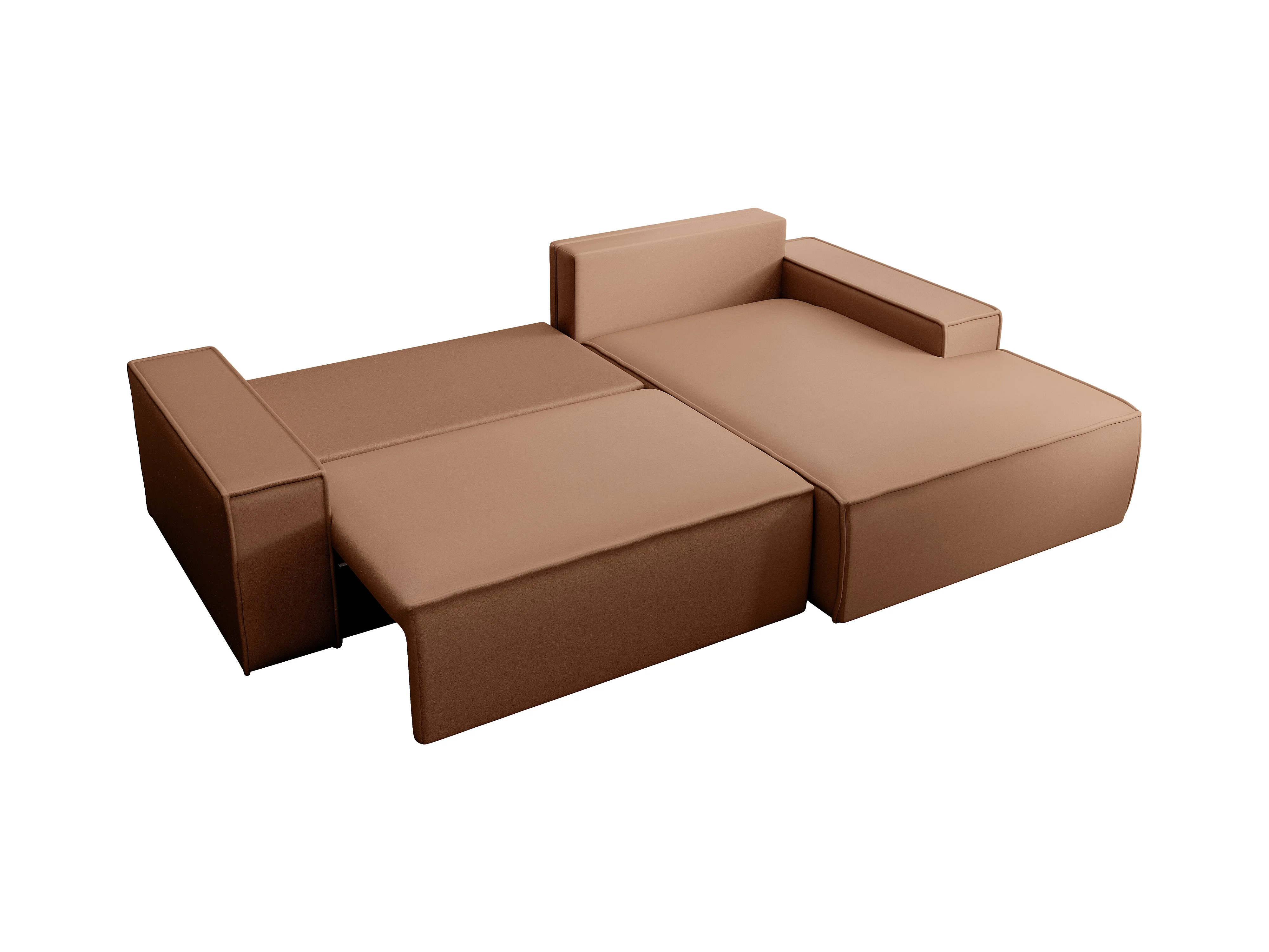 Hoekslaapbank met hoek rechts van bruine stof met leereffect AMELIA