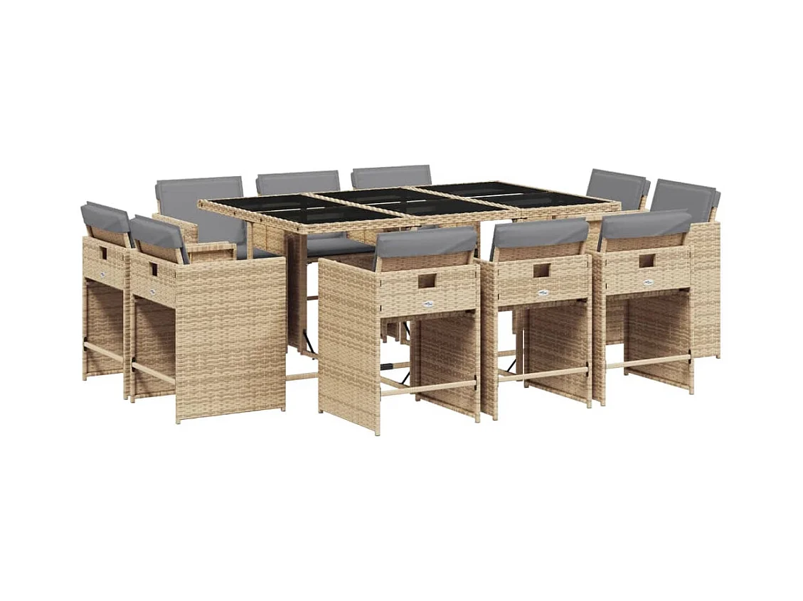Emilia 11-delige Tuinset met kussens poly rattan beige