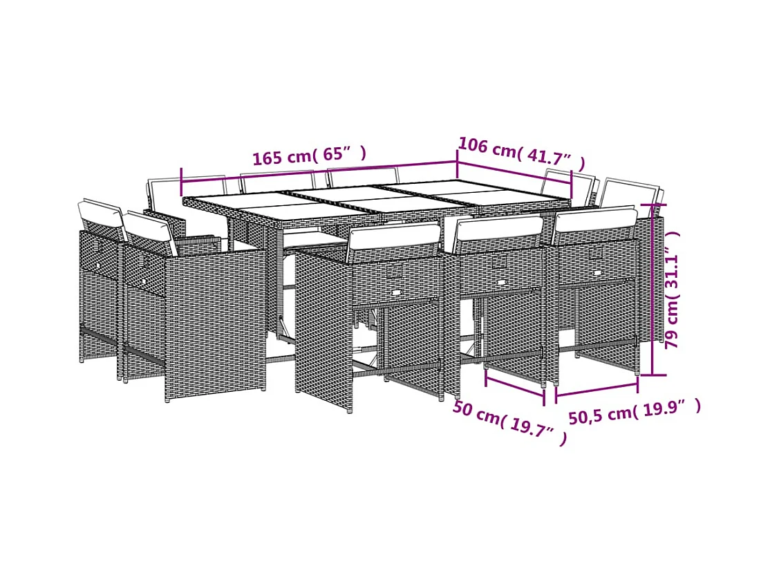 An Daingean 11-delige Tuinset met kussens poly rattan beige