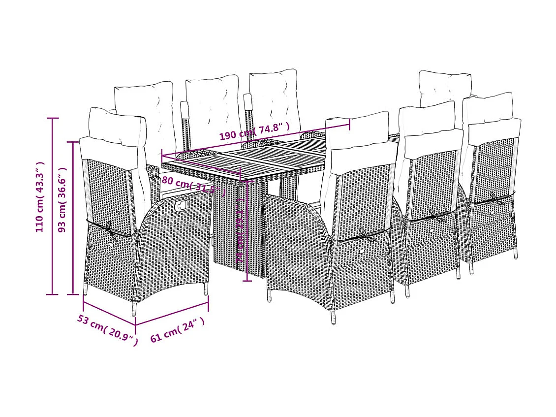 Anselm 9-delige Tuinset met kussens poly rattan grijs
