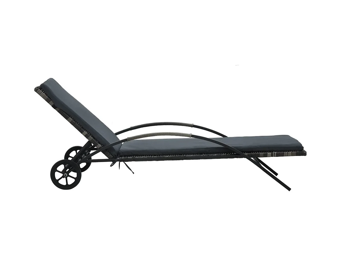 Chaise longue met kussen en wielen Antraciet gevlochten hars