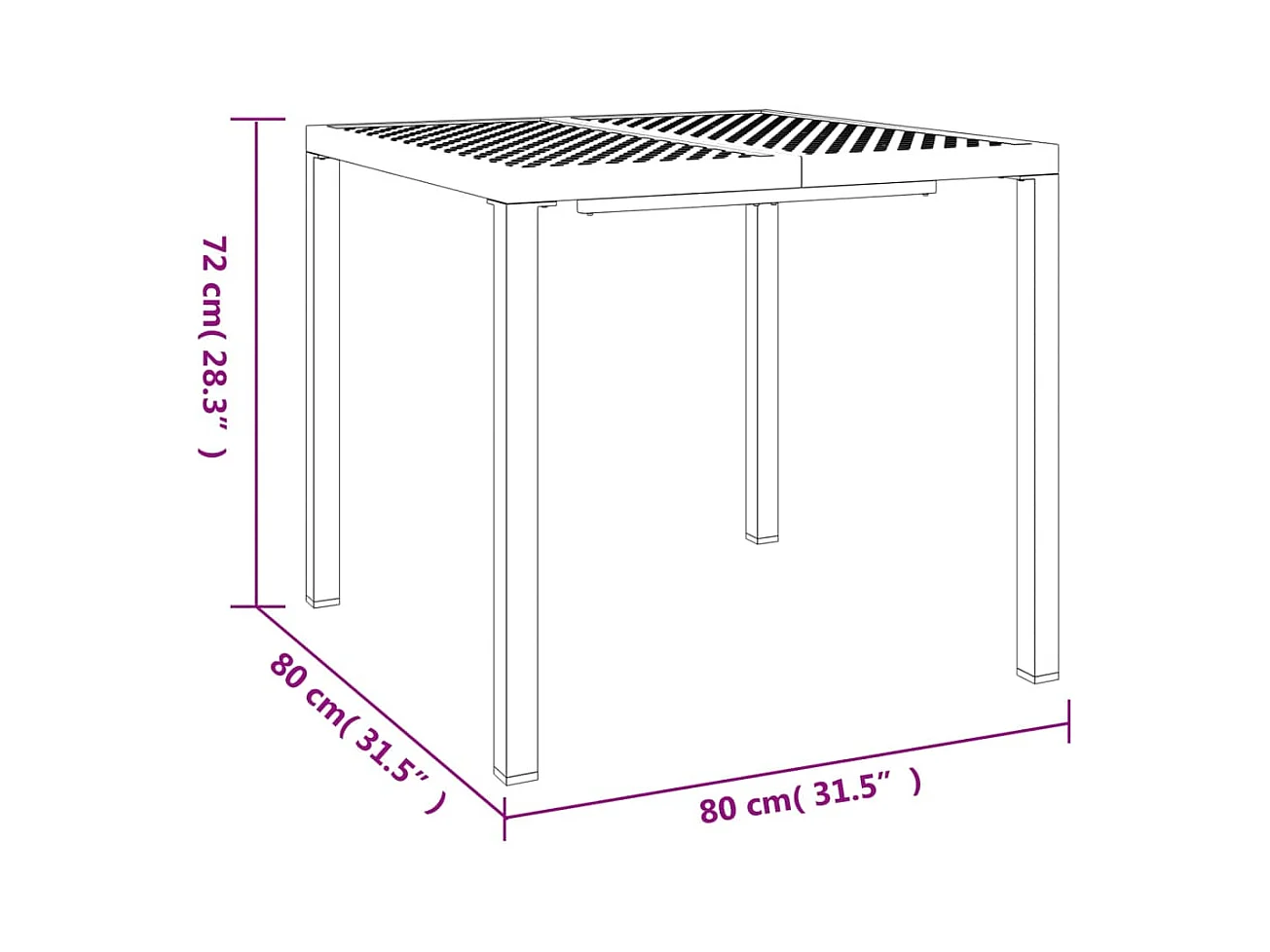 Antracietkleurige eettafel voor buiten 80x80x72 cm glas en staal