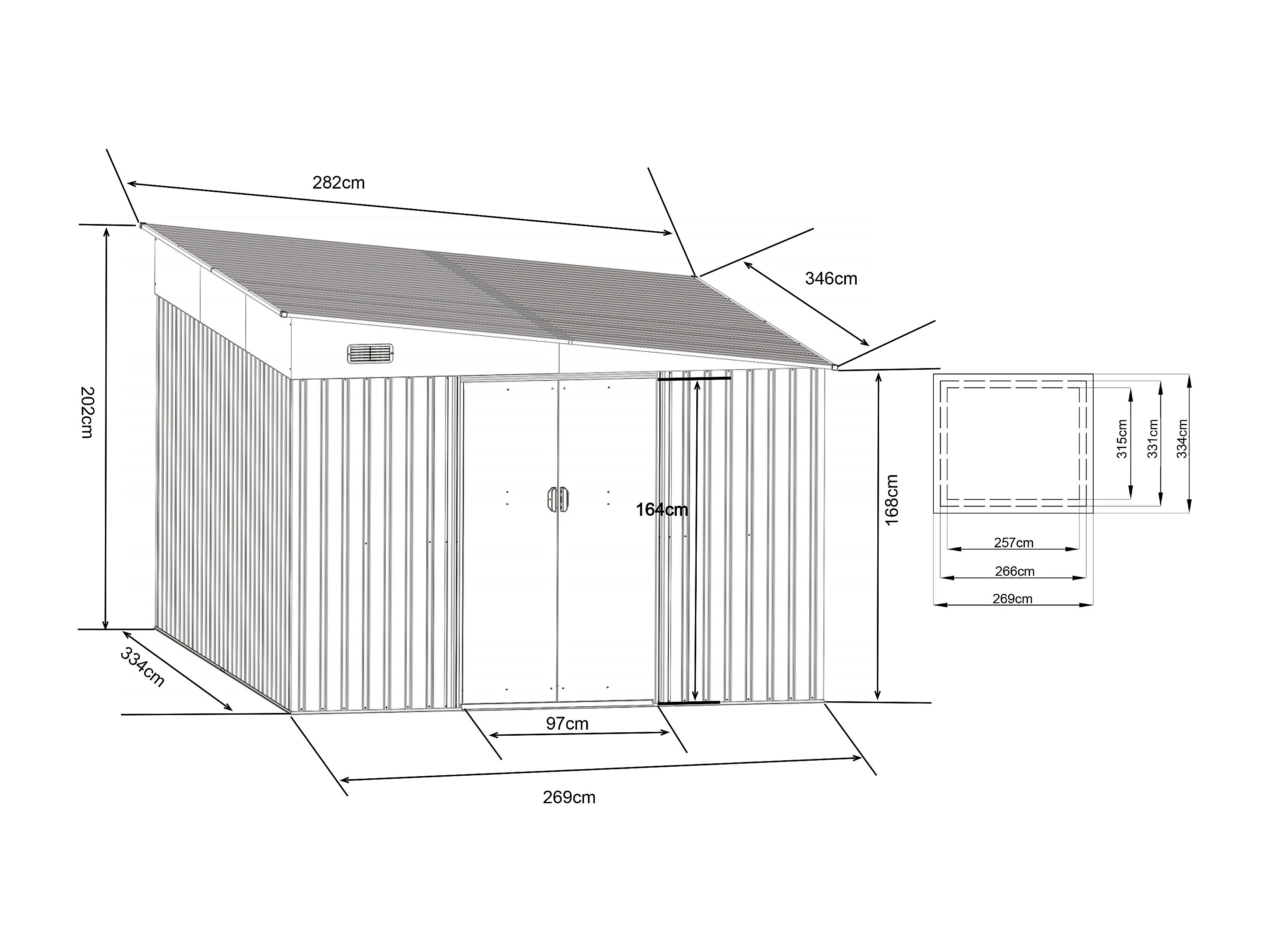 Antracietgrijs metalen tuinhuisje van gegalvaniseerd staal 9,76 m² - DAXTON