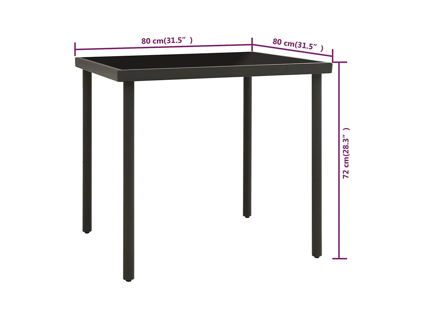 Antracietkleurige eettafel voor buiten 80x80x72 cm glas en staal