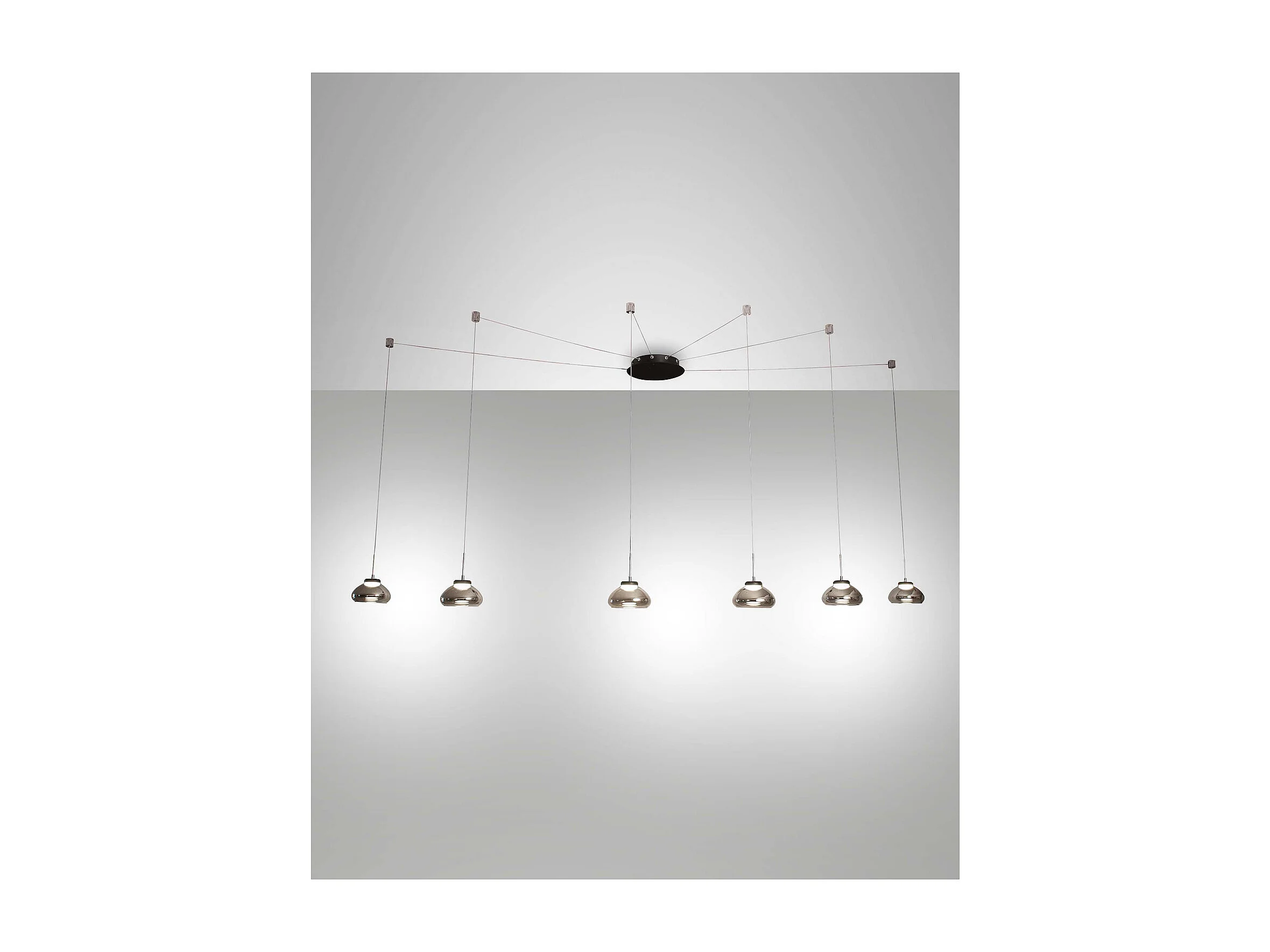 Arabella LED-hangende kroonluchter in metaal en gerookt geblazen glas 3547-46-126 Fabas Luce