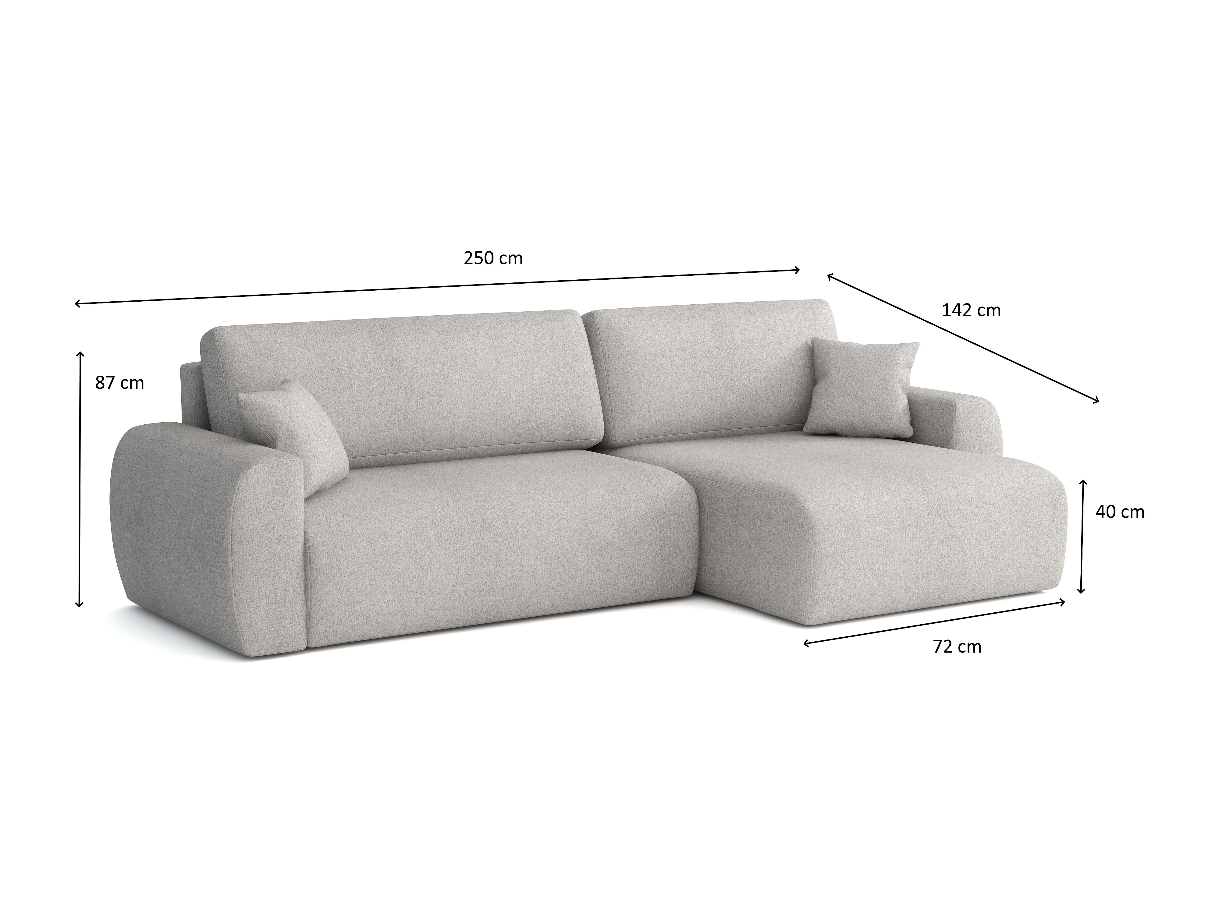 ARIEL L – Rechtse hoekbank met slaapfunctie 250x142x87 cm, stof Velo 19 zwart