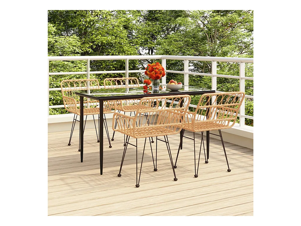 Vessira 5-delige Tuinset met kussens poly rattan bruin