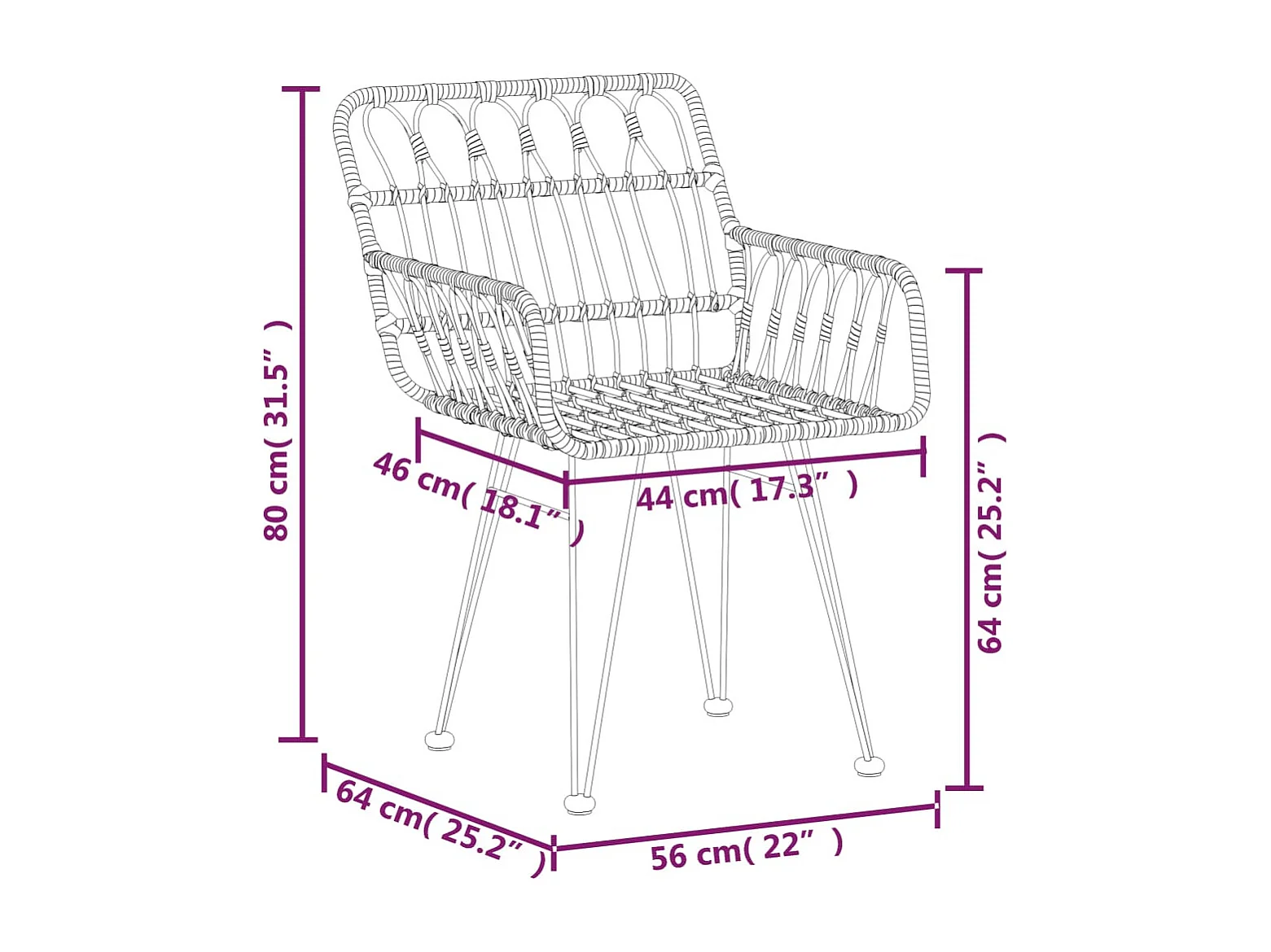 Set tuintafel en tuinstoelen rechthoek