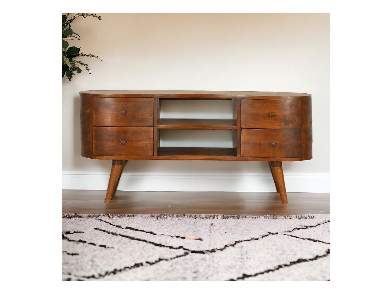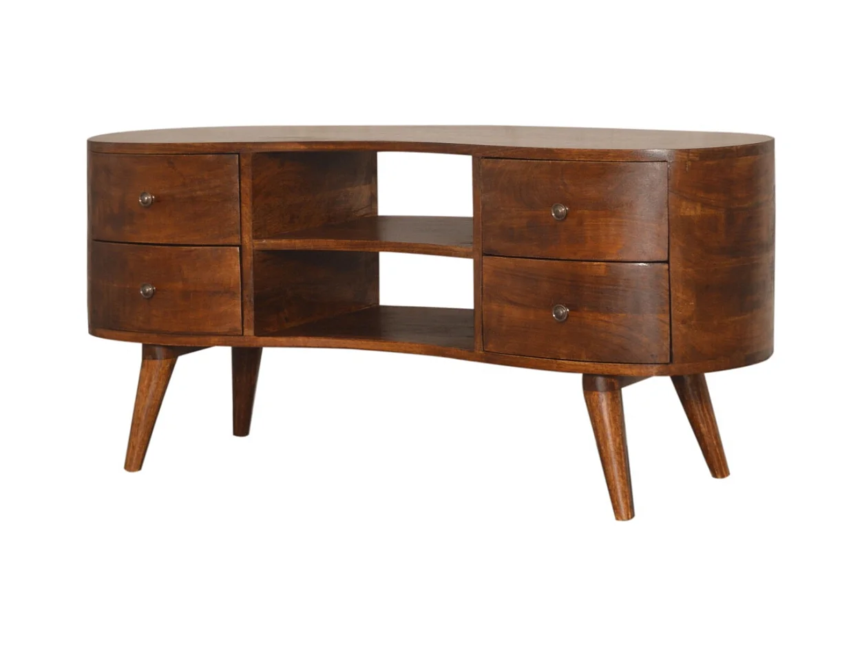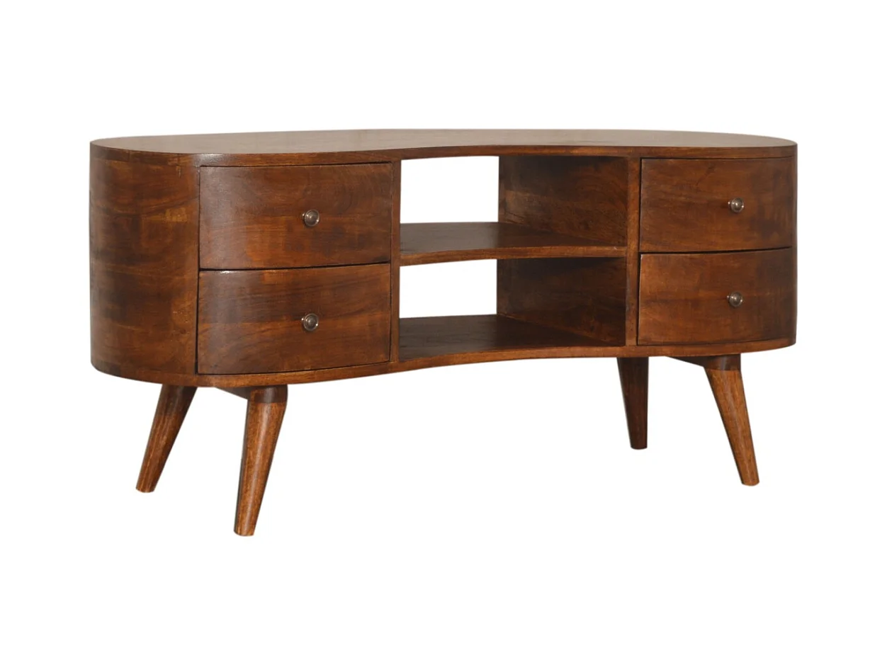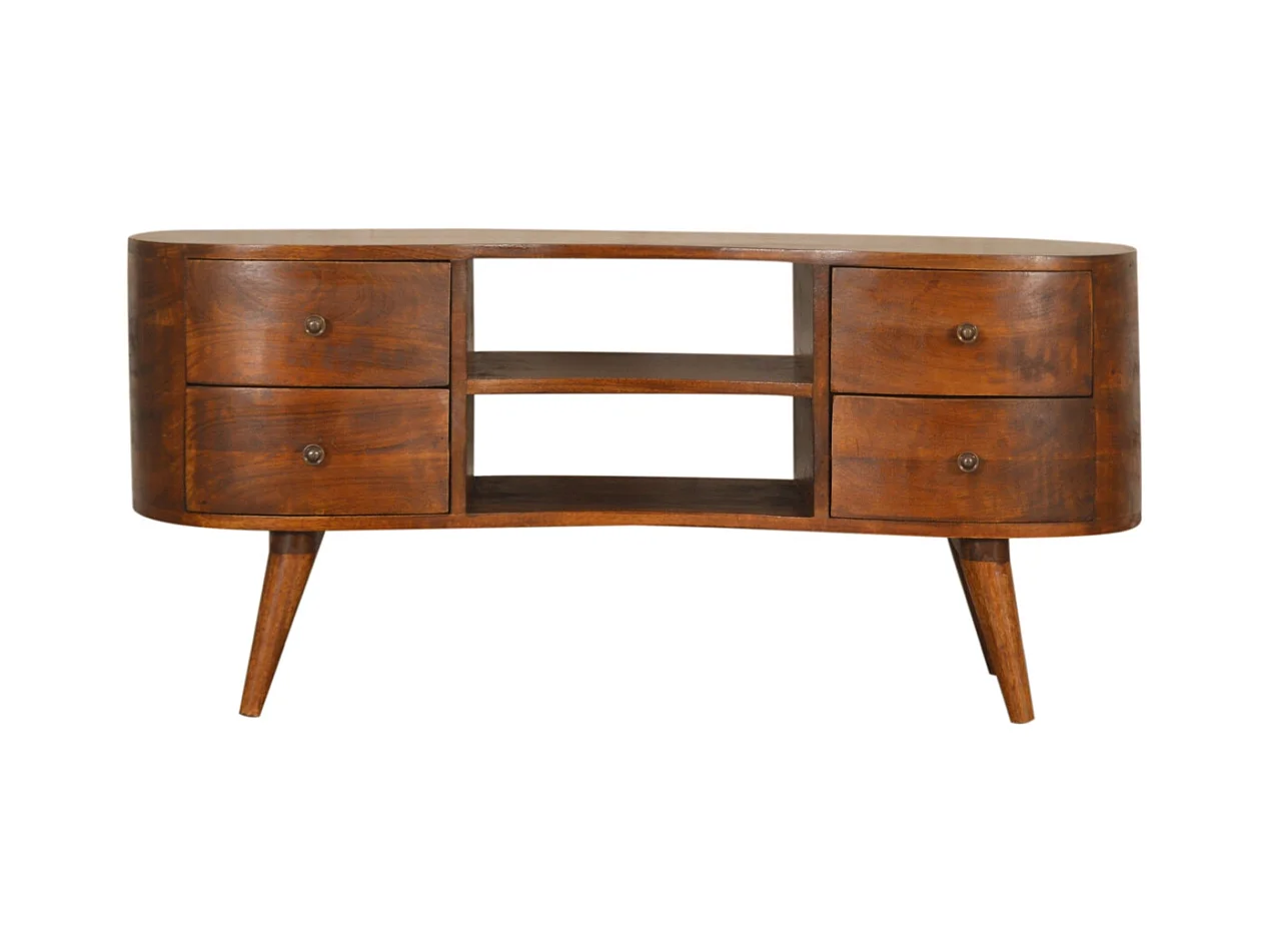 Artisan Furniture Mini gebogen tv-meubel van massief kastanjehout