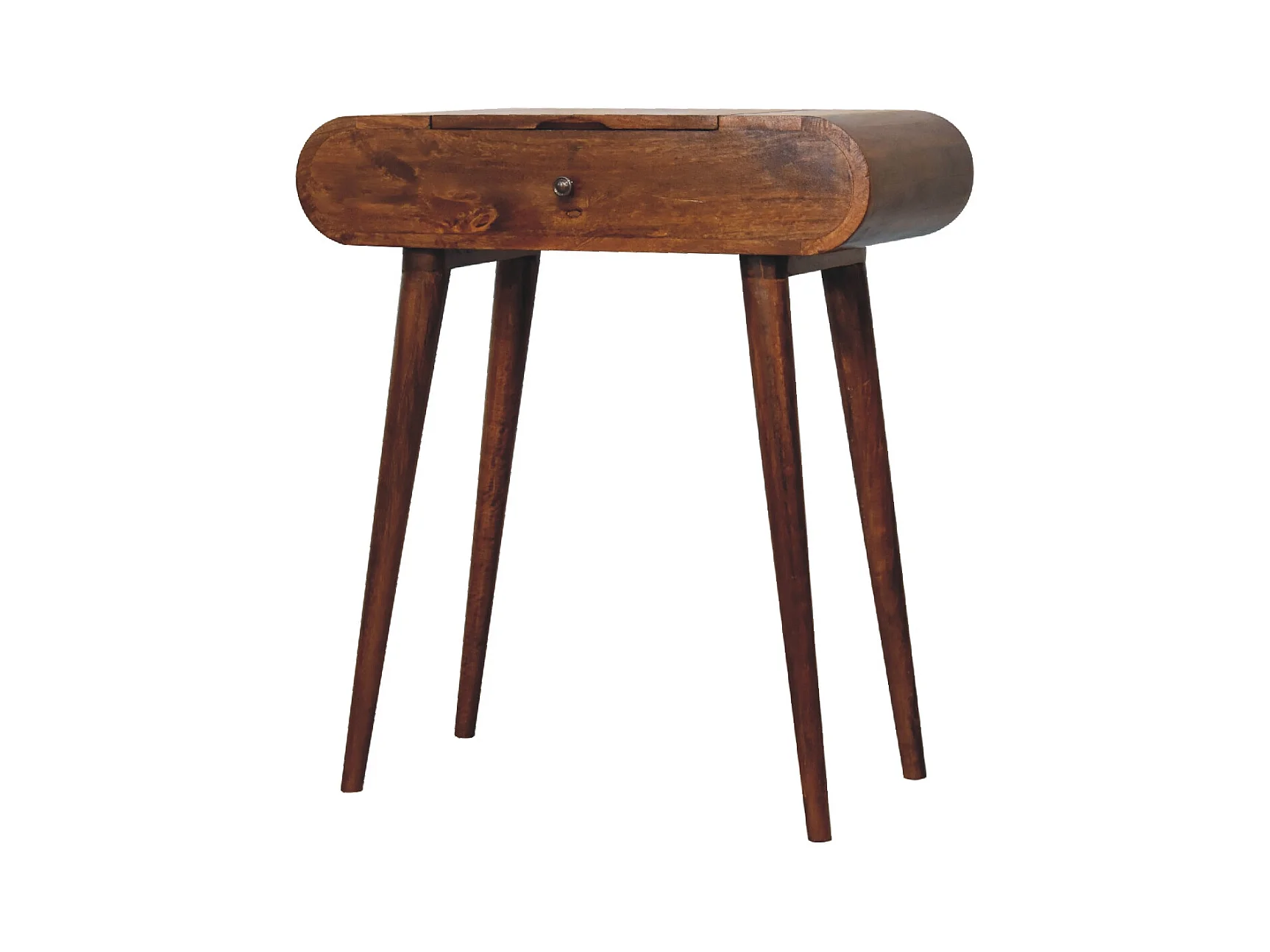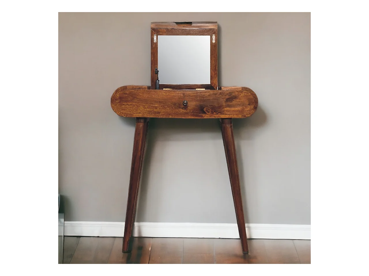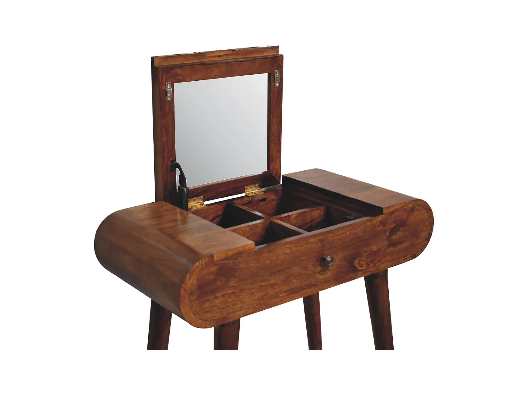 Artisan Furniture Massief Houten Mini Kastanje Vouwbare Make-up tafel met Oplaadbare Ronde Spiegel, Slaapkamer
