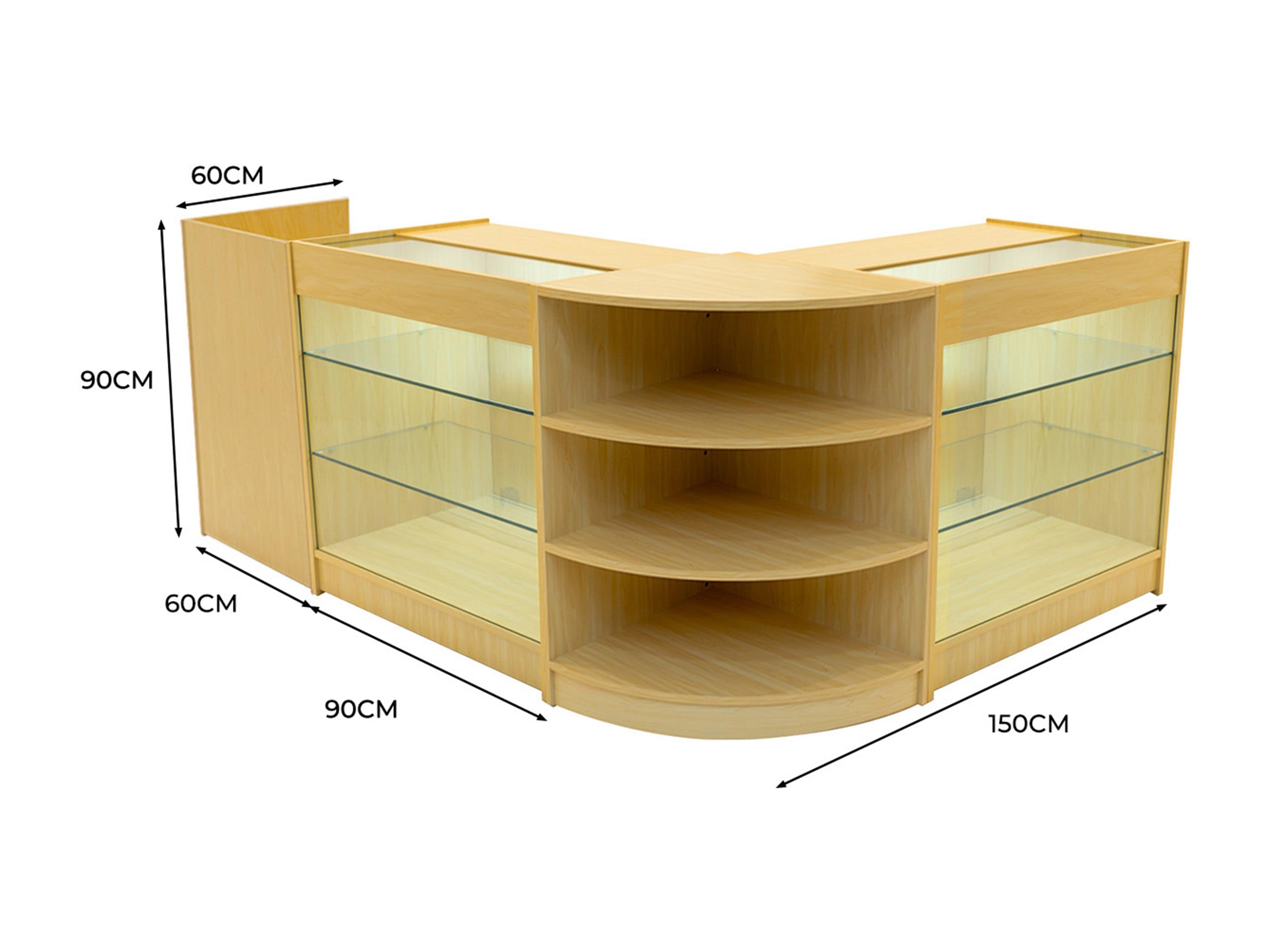 Europa LED Winkel Toonbank Set B1500, C1500, TB60 & LM60 - Esdoorn