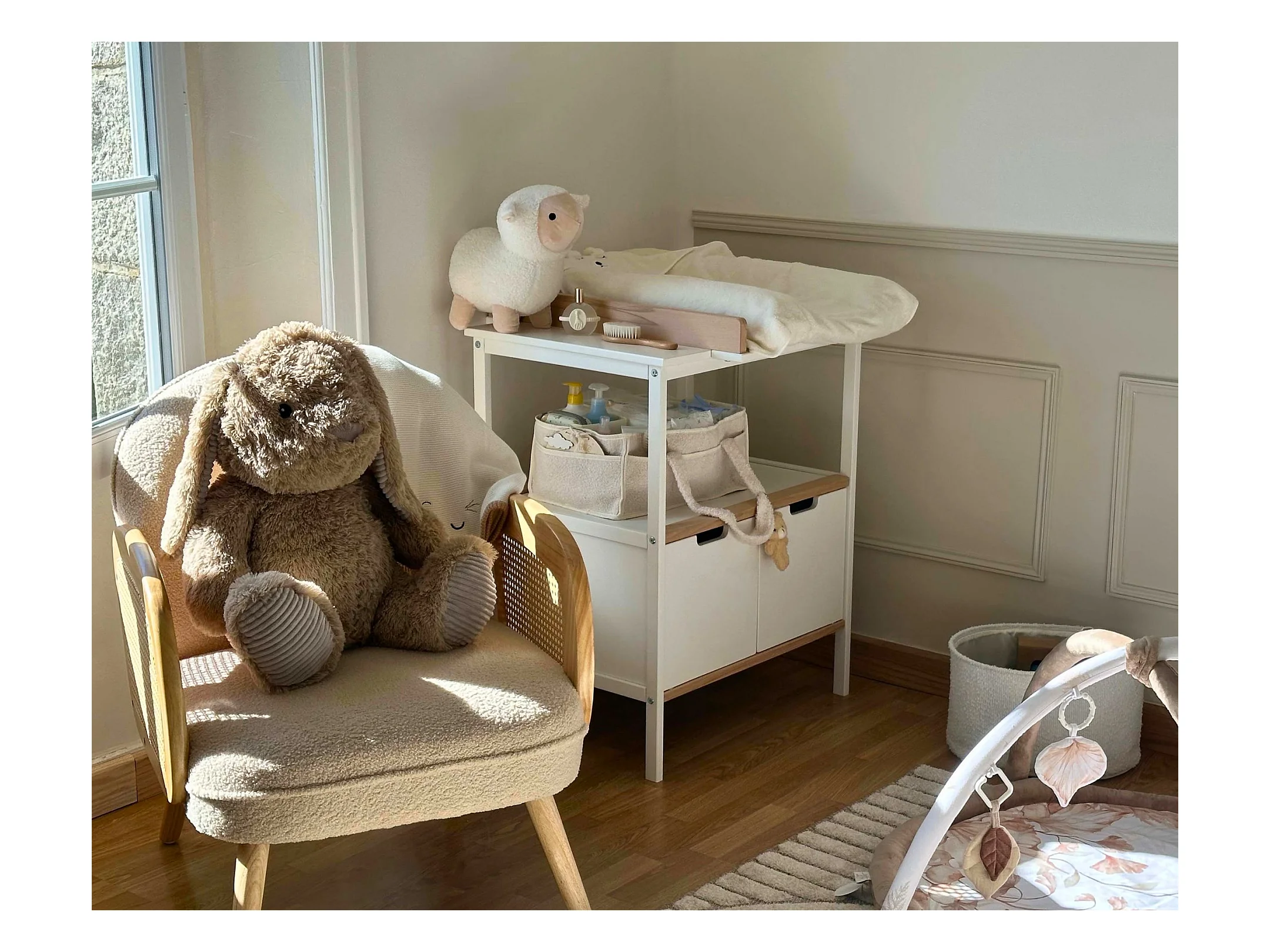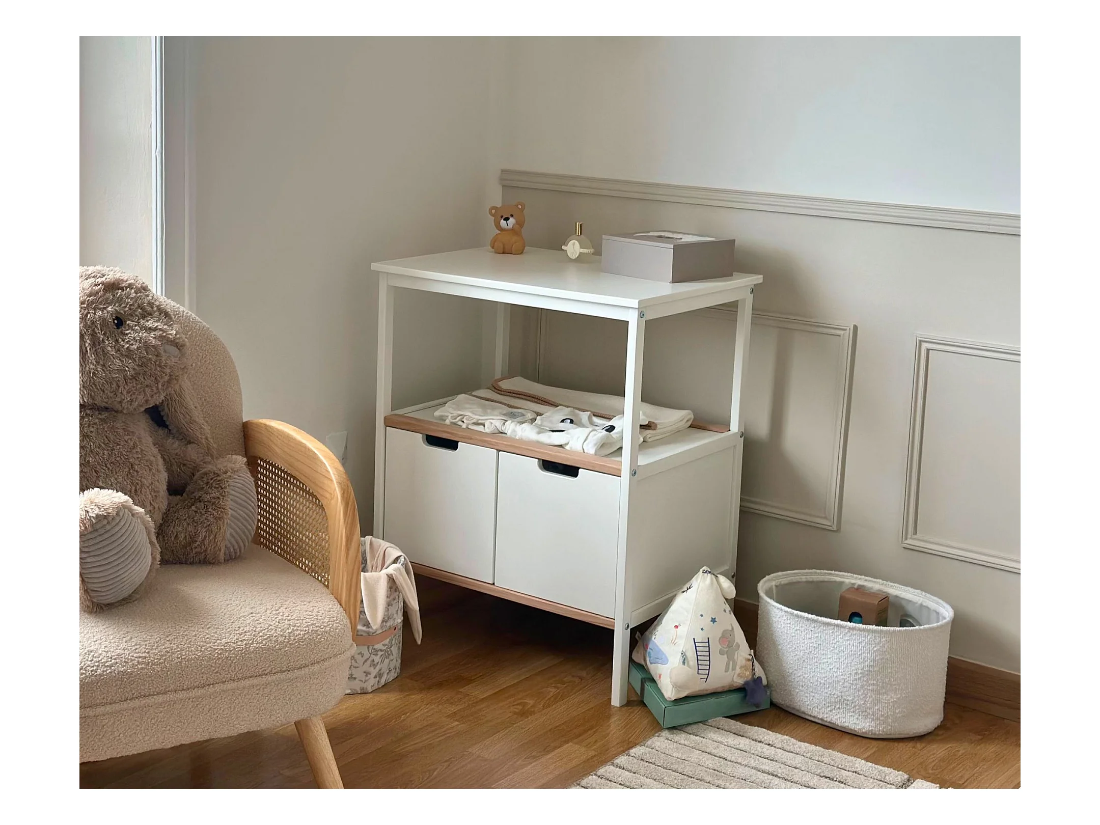 Stevige babycommode met geïntegreerd aankleedkussen in lichte eiken kleur, collectie DANAÉ.