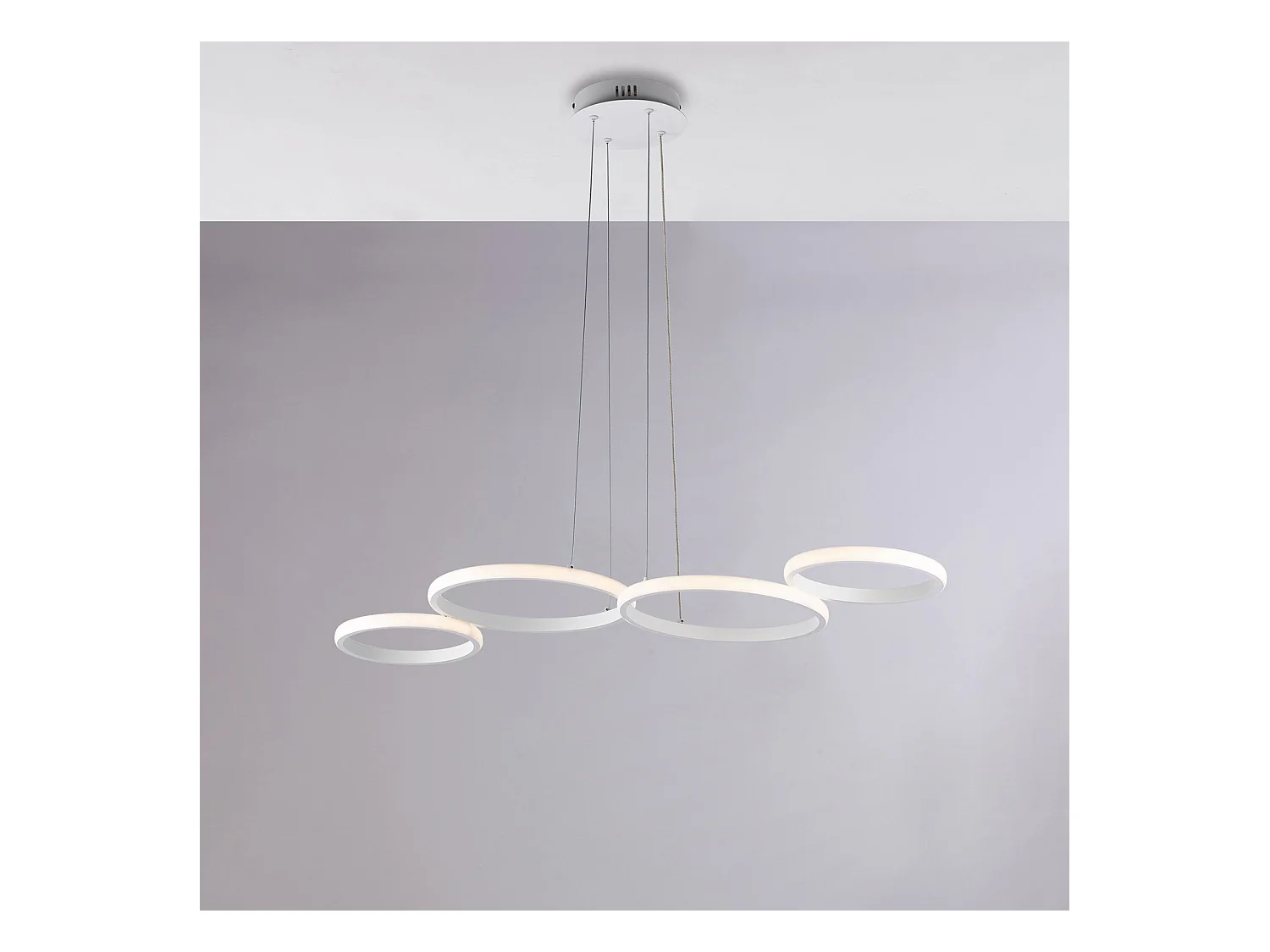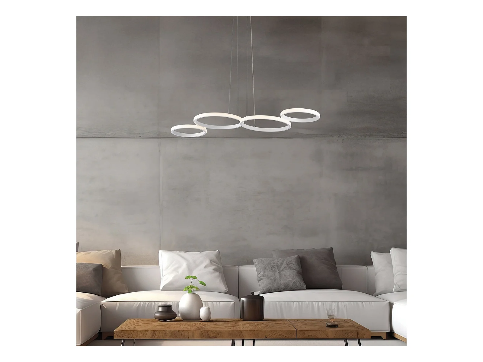 Suspension LED Atena métal blanc, télécommande incluse, LED CCT intégrée, câbles réglables, design minimaliste