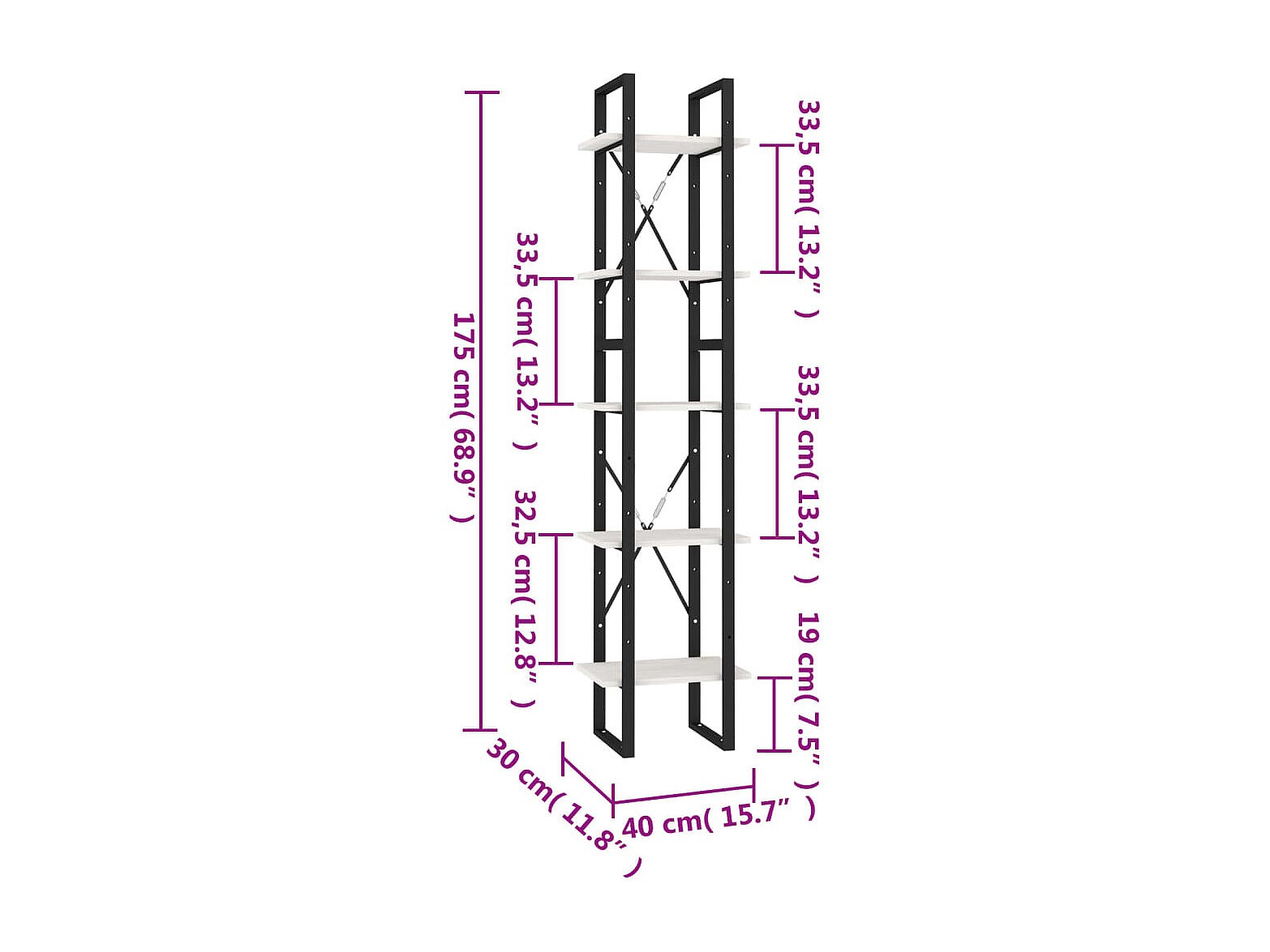 Edith Boekenkast met 5 schappen 40x30x175 cm bewerkt hout wit