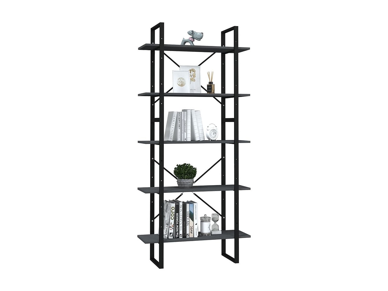 Edith Boekenkast met 5 schappen 80x30x175 cm bewerkt hout grijs
